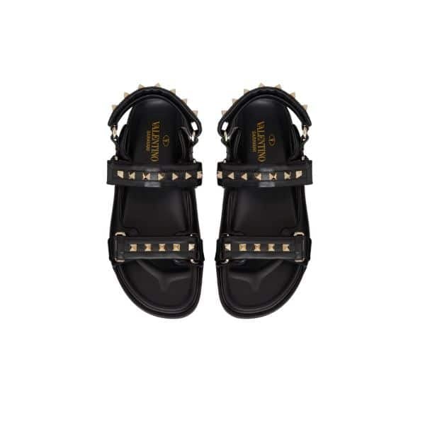 Valentino Garavani Rockstud Flat Sandal In Nappa Leather For Woman In Black Ws0Fe6Mnk 0No