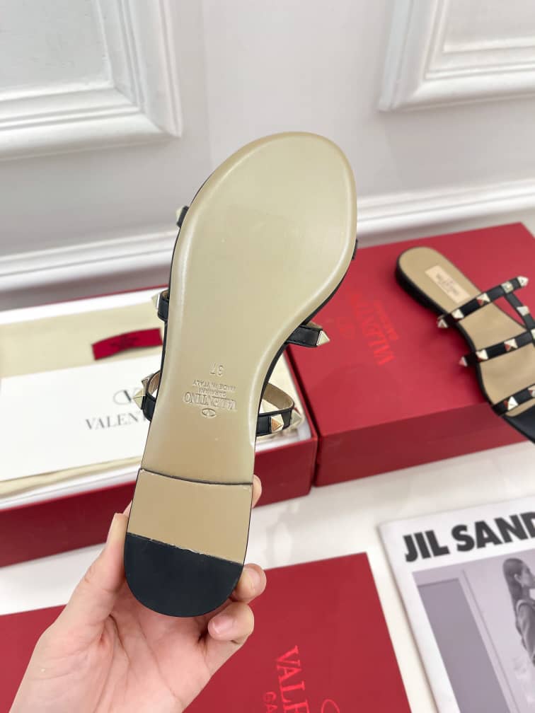 Valentino Garavani Rockstud Flat Slide Sandal Black 4W2S0C49Vod 0No