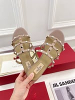 Valentino Garavani Rockstud Calfskin Leather Sandal Beige