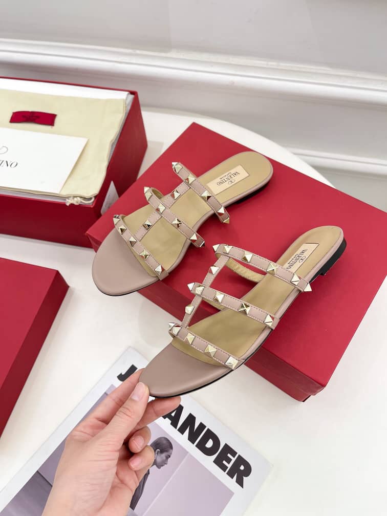 Valentino Garavani Rockstud Flat Slide Sandal Pink 4W2S0C49Vod P45