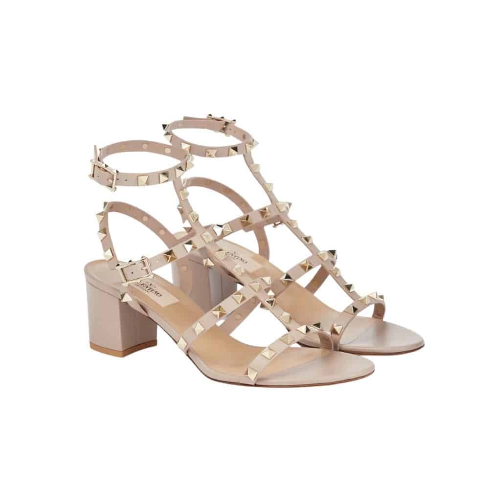 Valentino Garavani Rockstud Leather Sandals Beige
