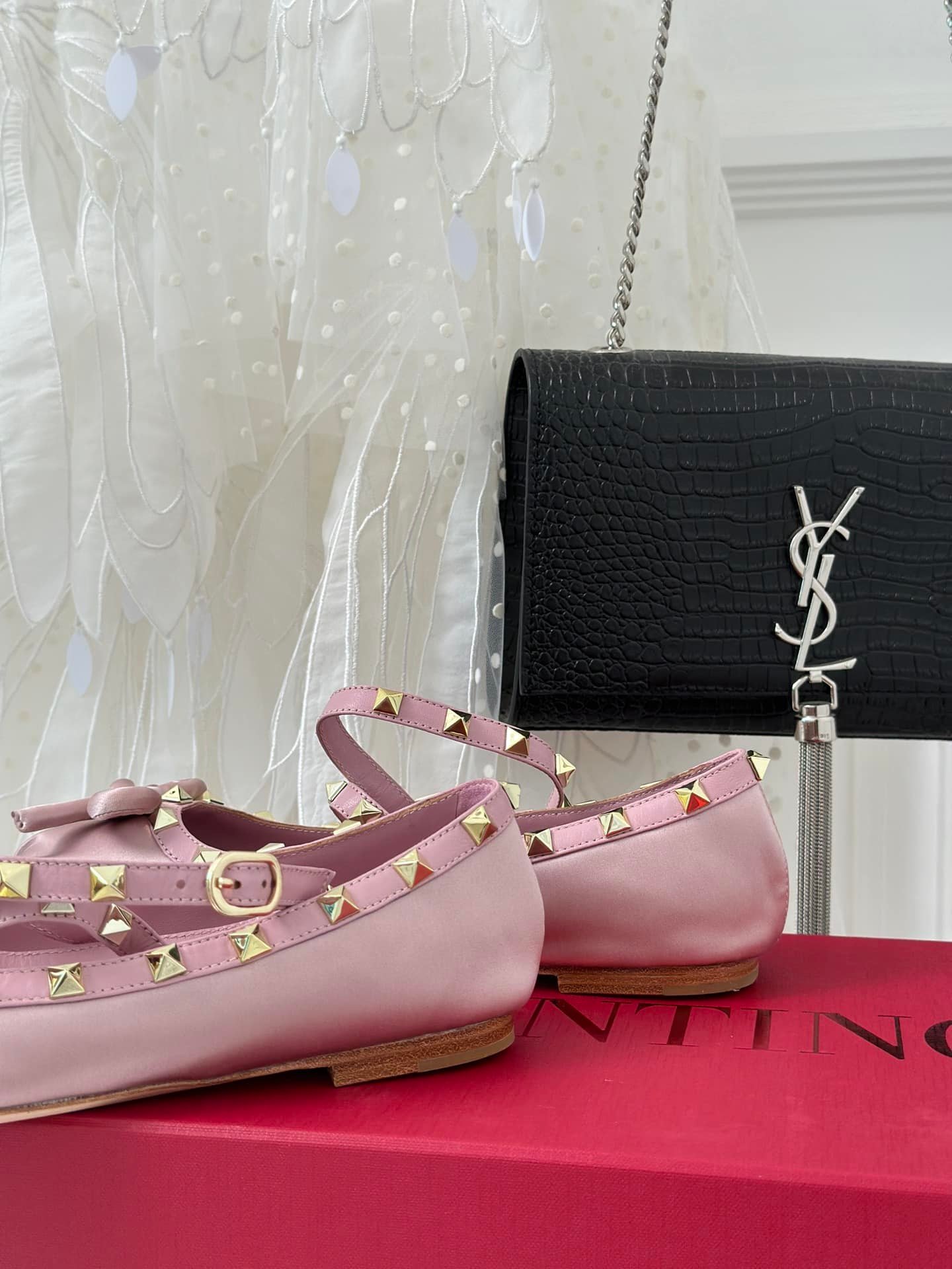 Valentino Garavani Rockstud Satin Ballerina Water Lilac 3W2S0Hb6Swh 6E0