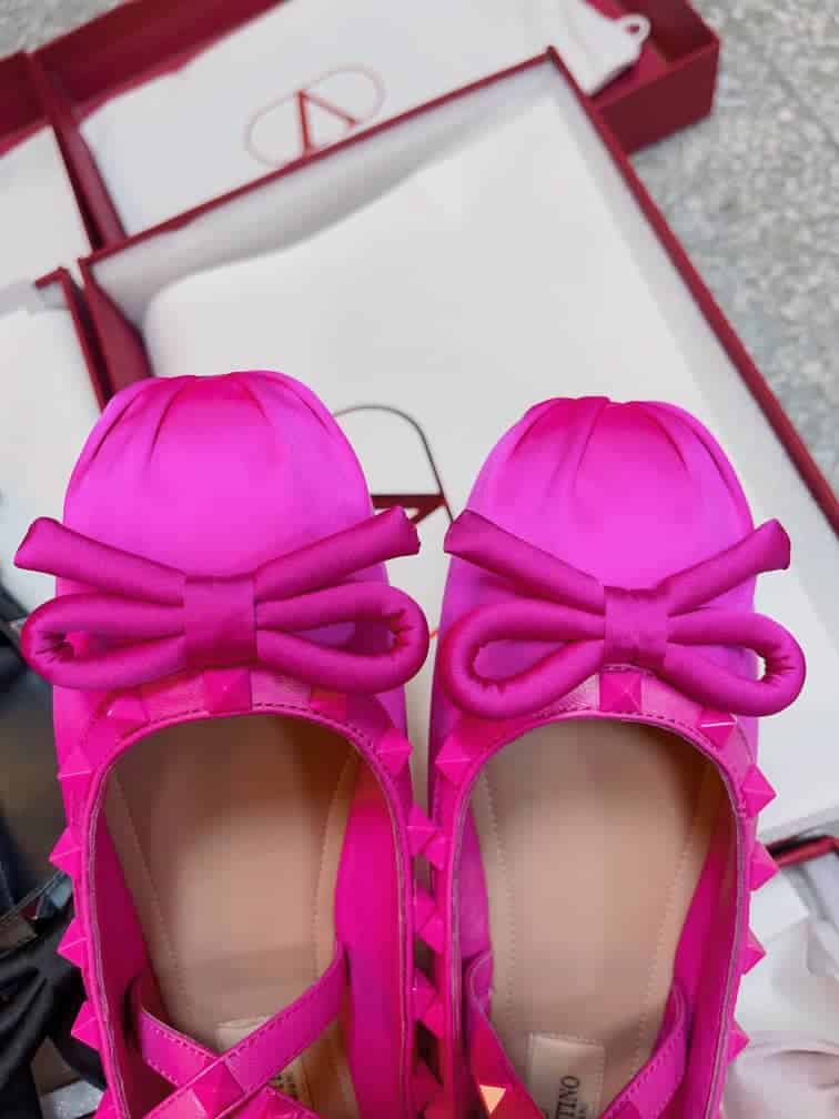 Valentino Garavani Rockstud Satin Ballerinas With Tone On Tone Studs Pink 3W2S0Hb6Mju Uwt
