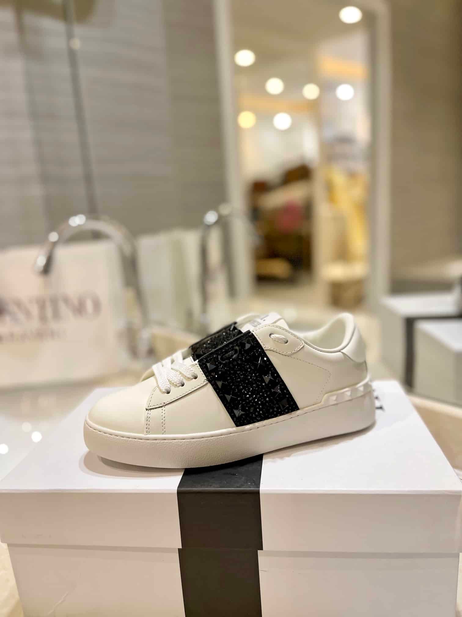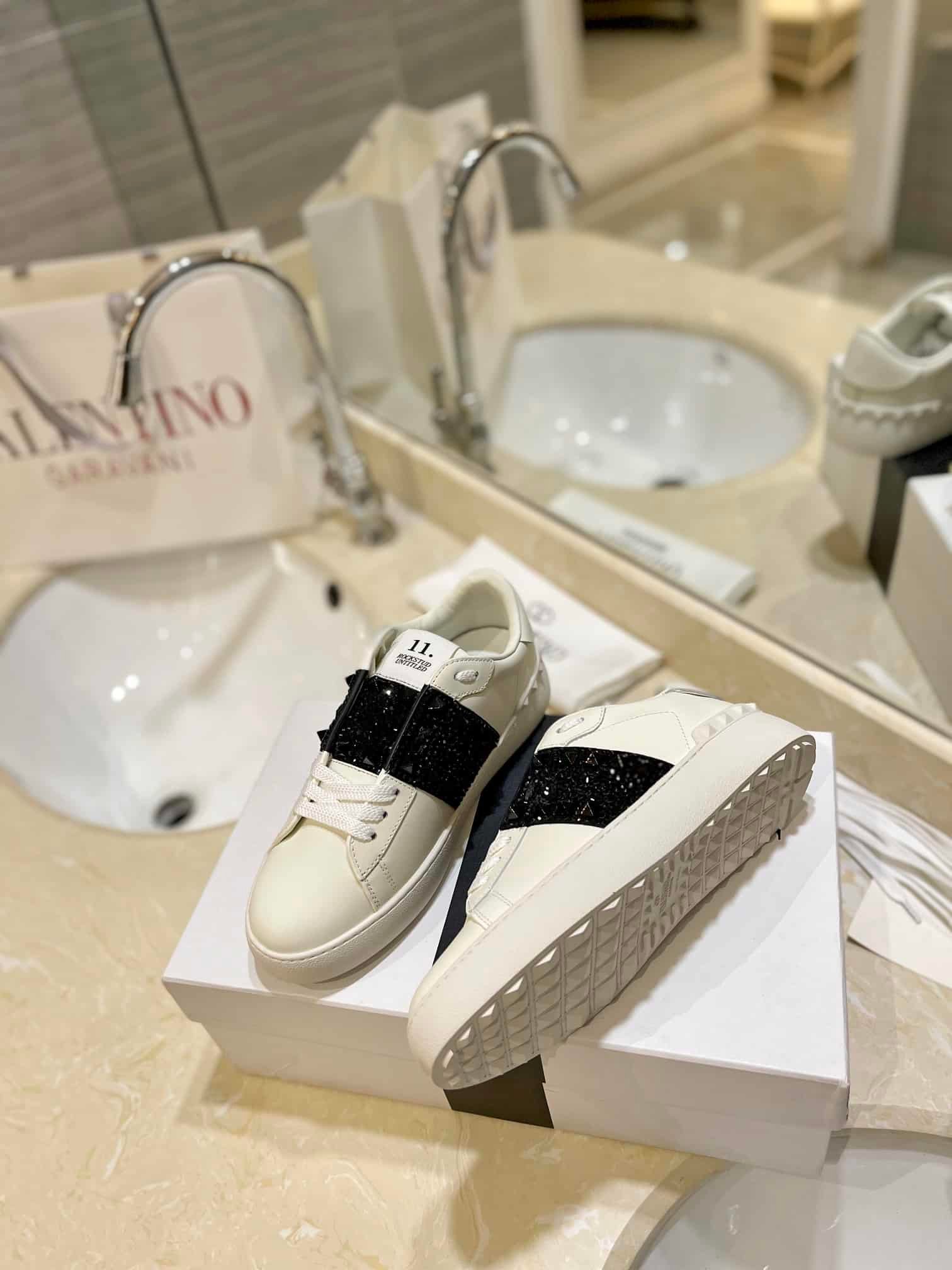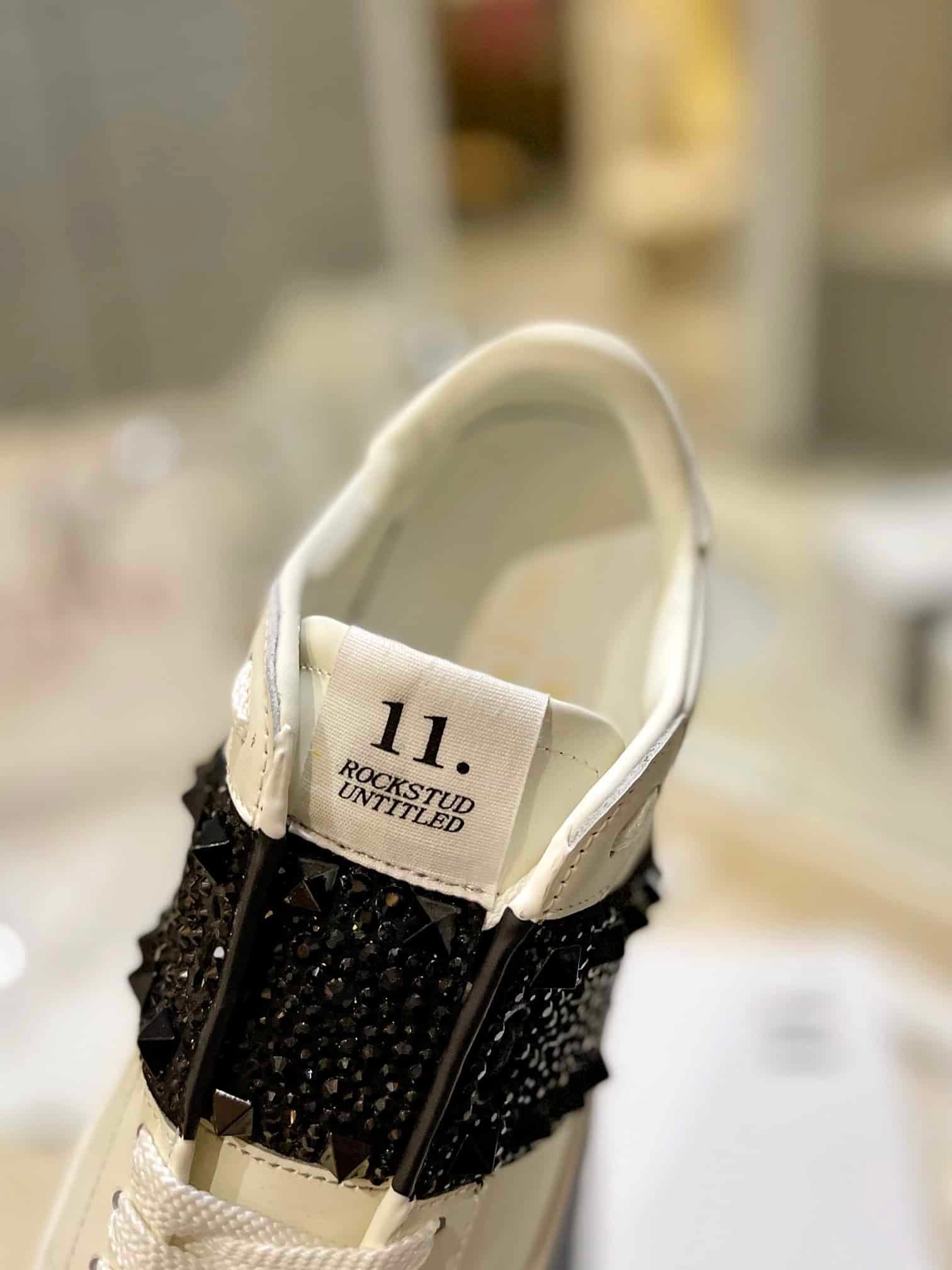 Valentino Garavani Rockstud Untitled Crystal Embellished Leather Sneakers Black