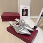 Valentino Garavani Archive Roserouche Metallic Leather High Heel Silver