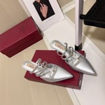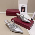 Valentino Garavani Rockstud Wispy Mule In Calfskin Silver