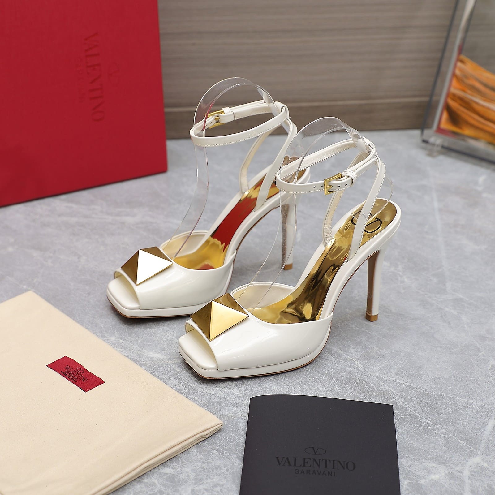 Valentino Garavani Rockstud Patent Leather Strap Pump Beige