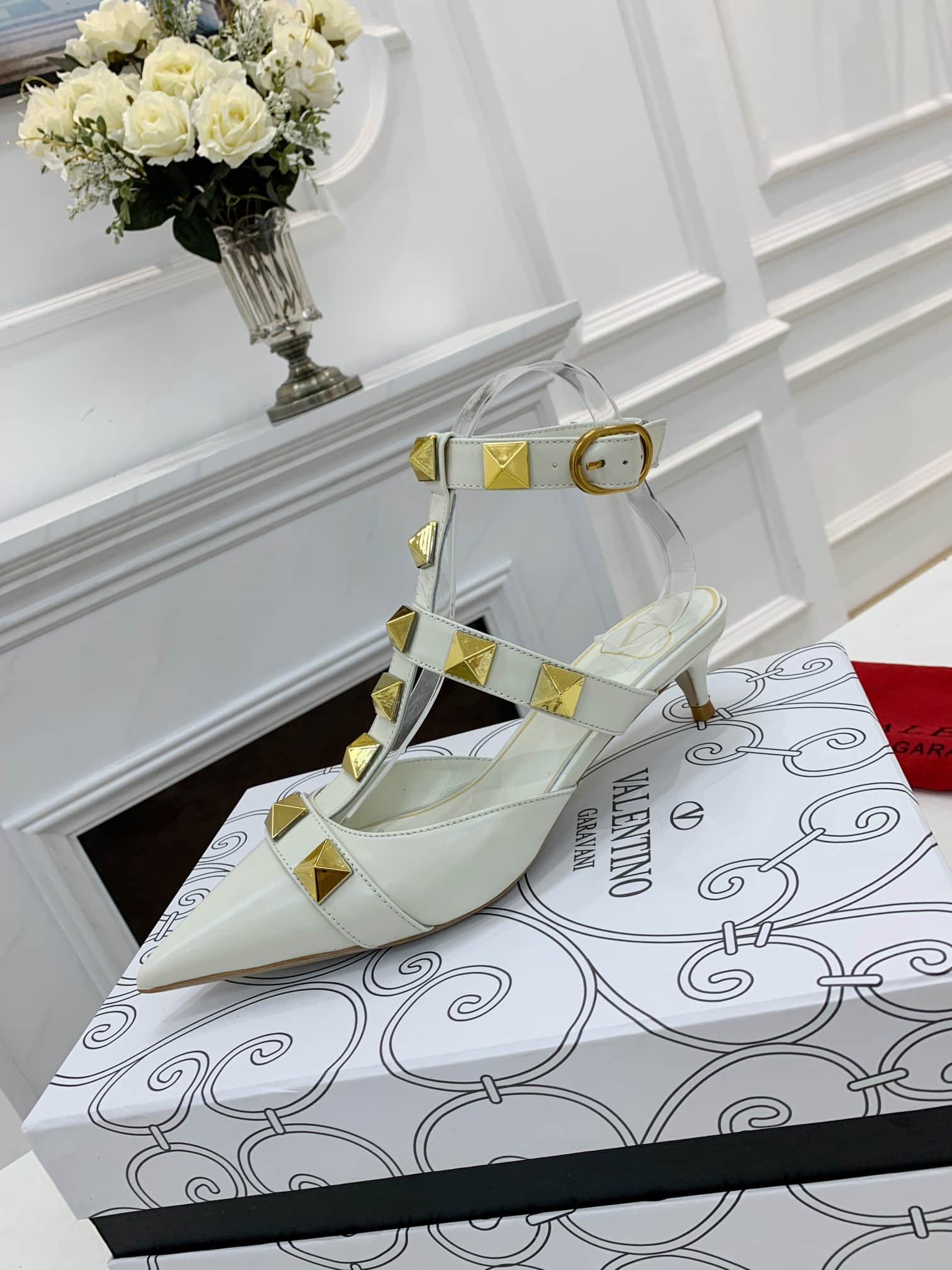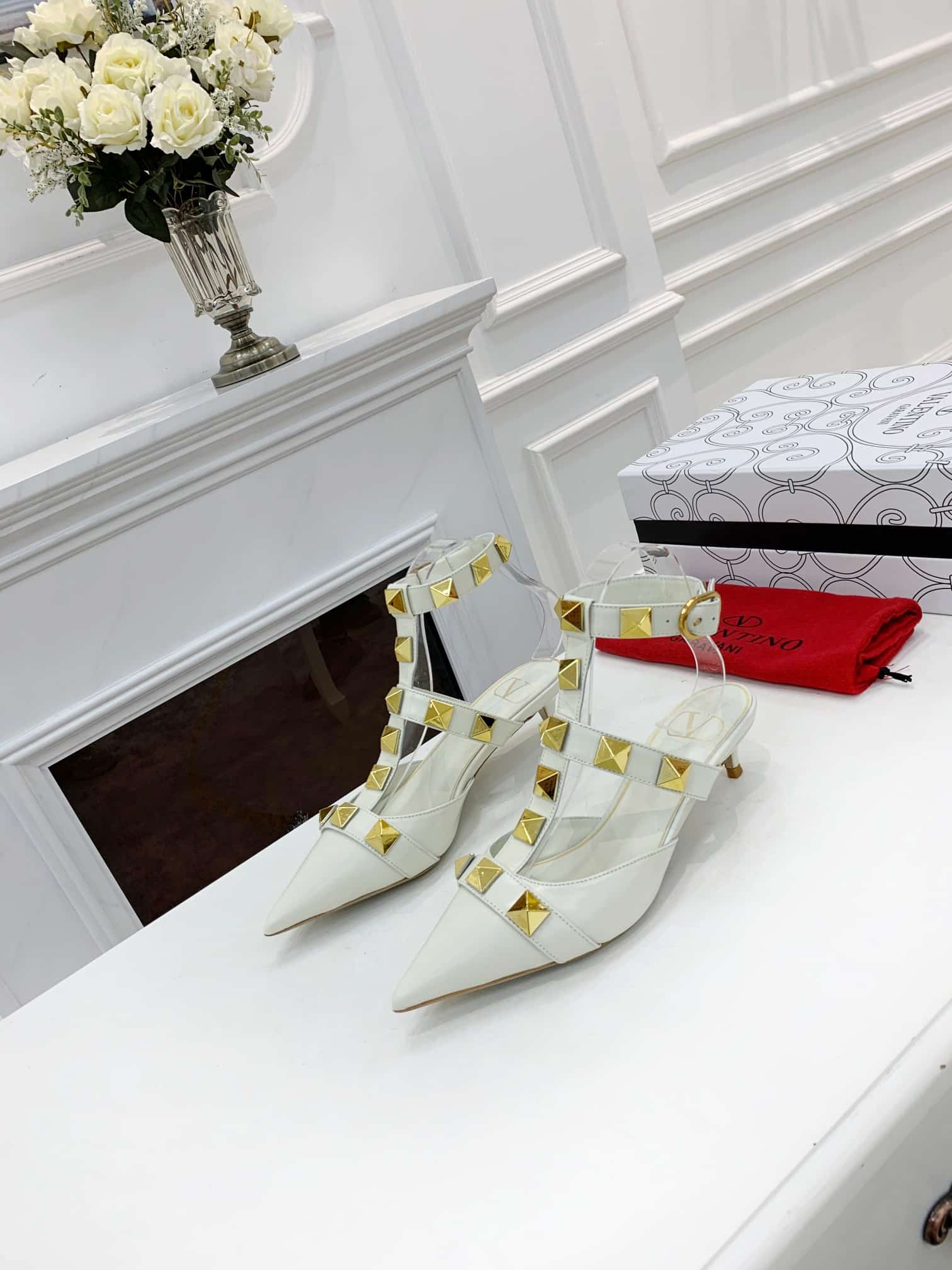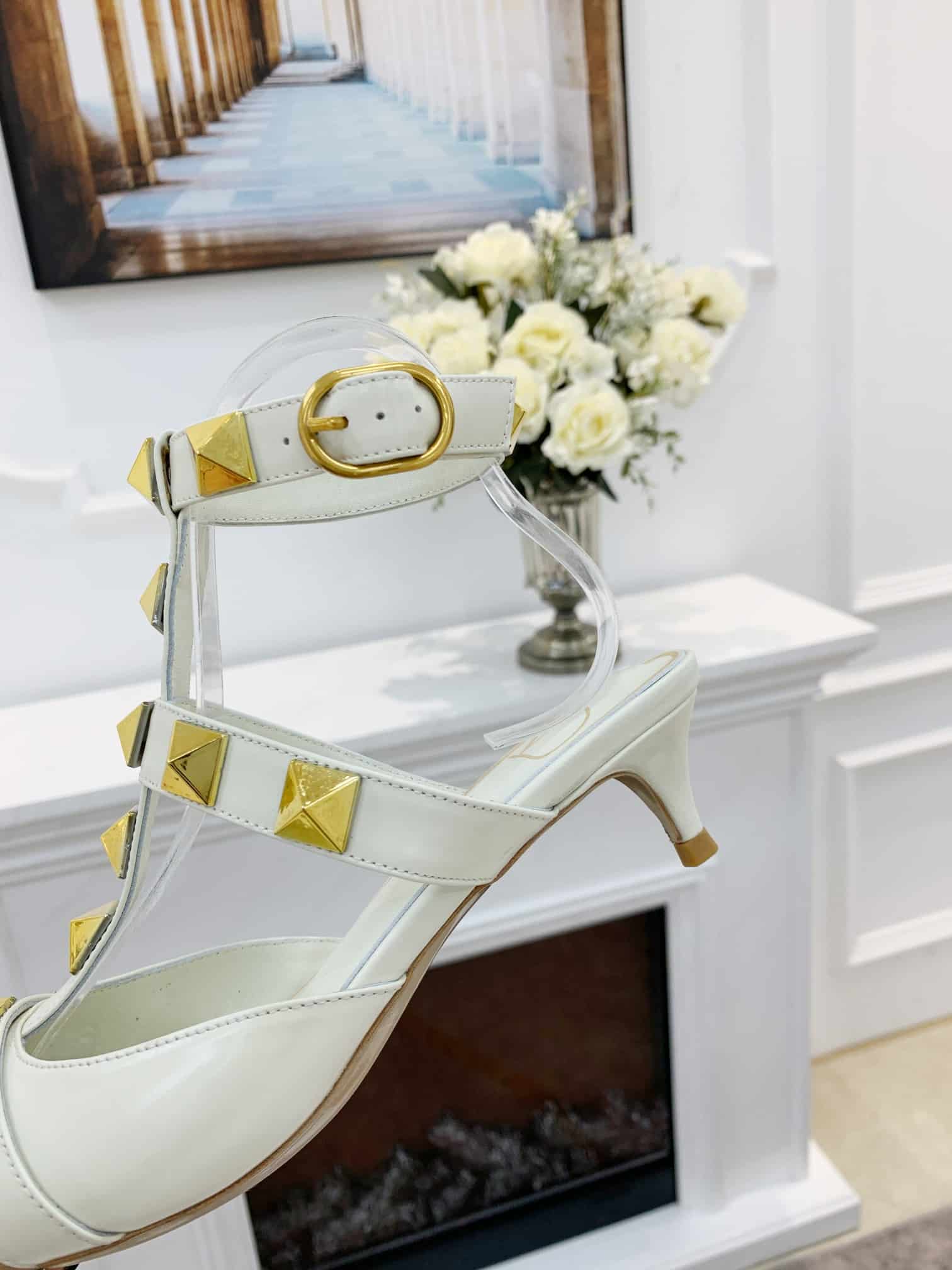 Valentino Garavani Roman Stud Kitten Heel Pumps White