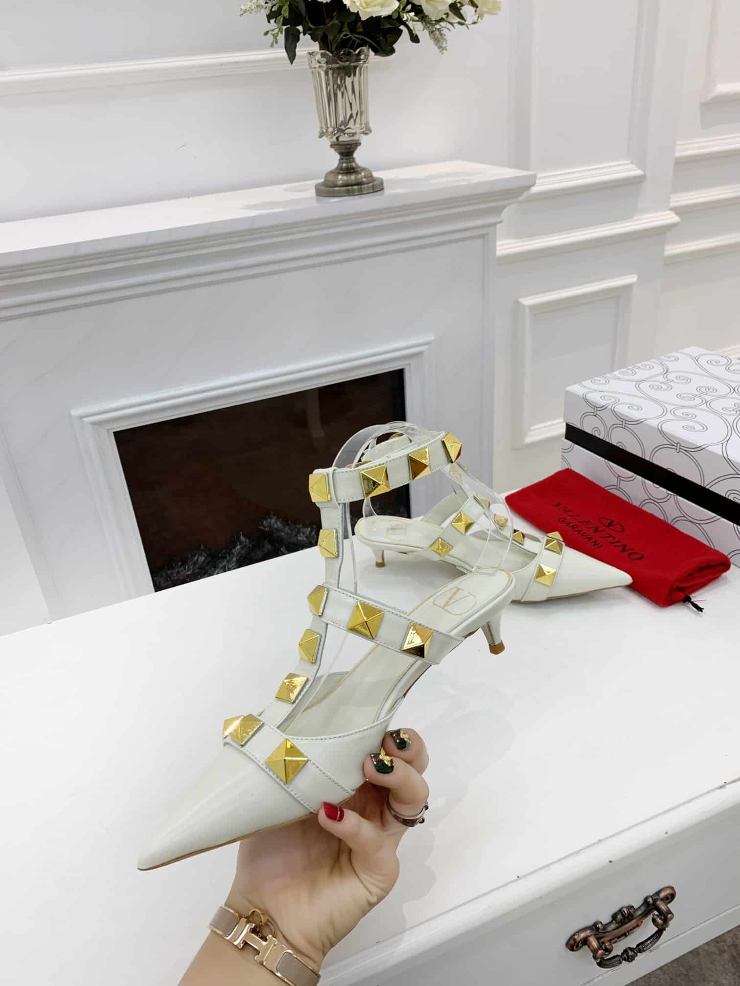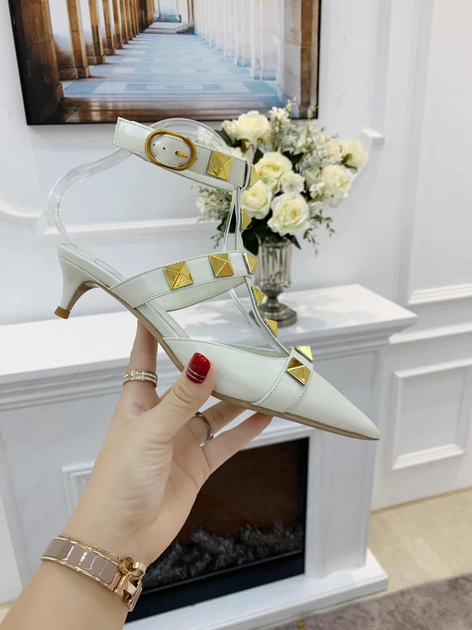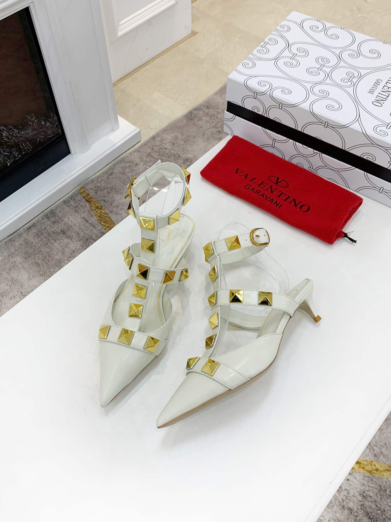Valentino Garavani Roman Stud Kitten Heel Pumps White