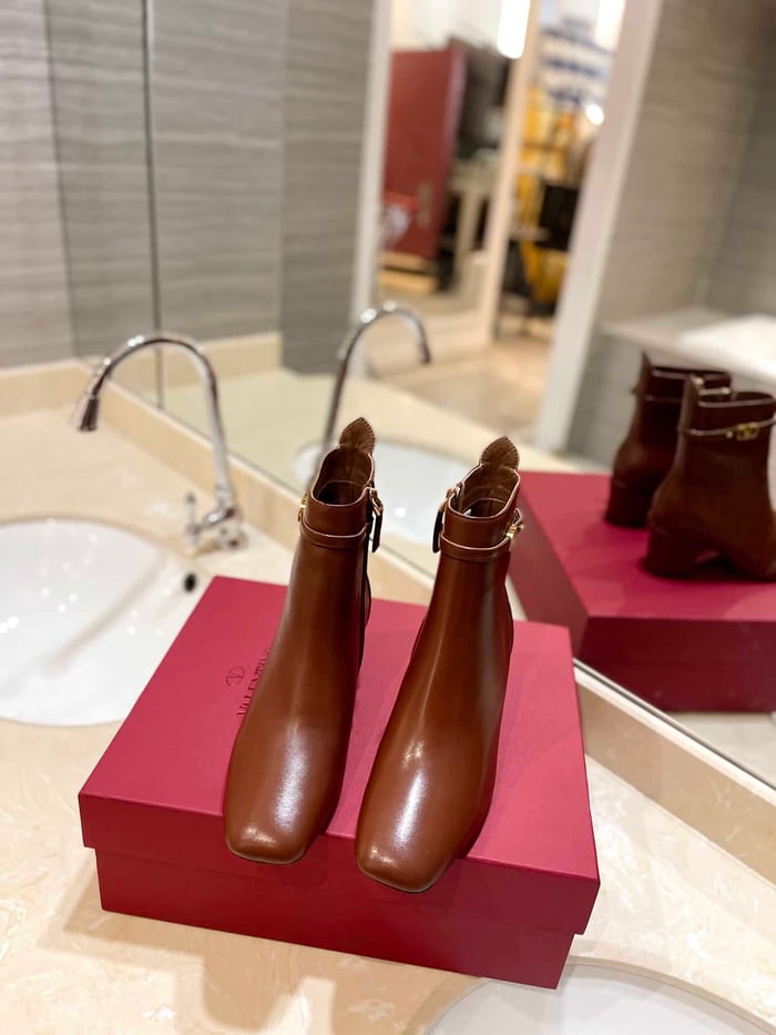Valentino Garavani Tan Go Ankle Boot In Calfskin Leather Brown