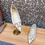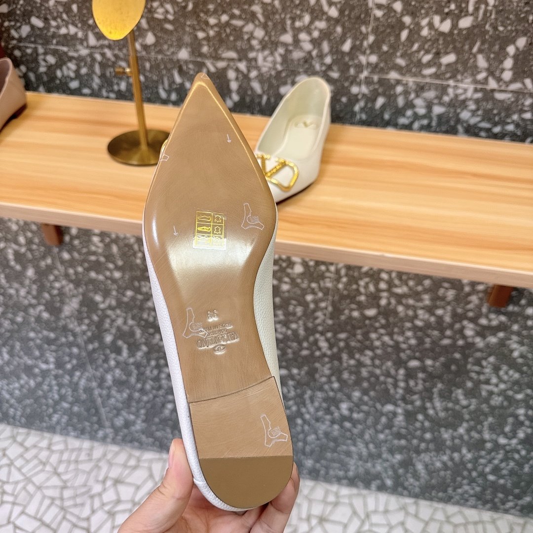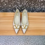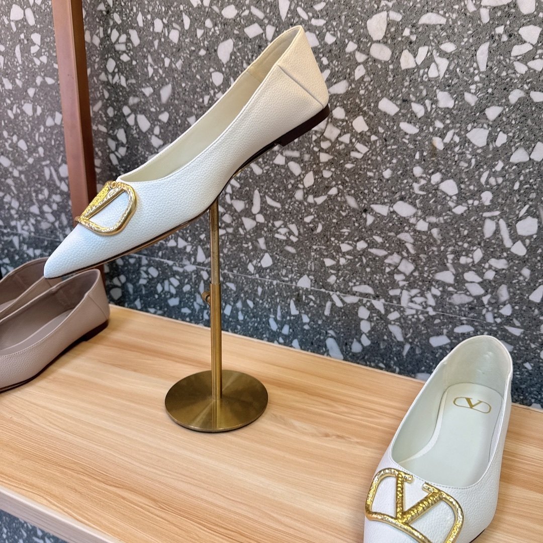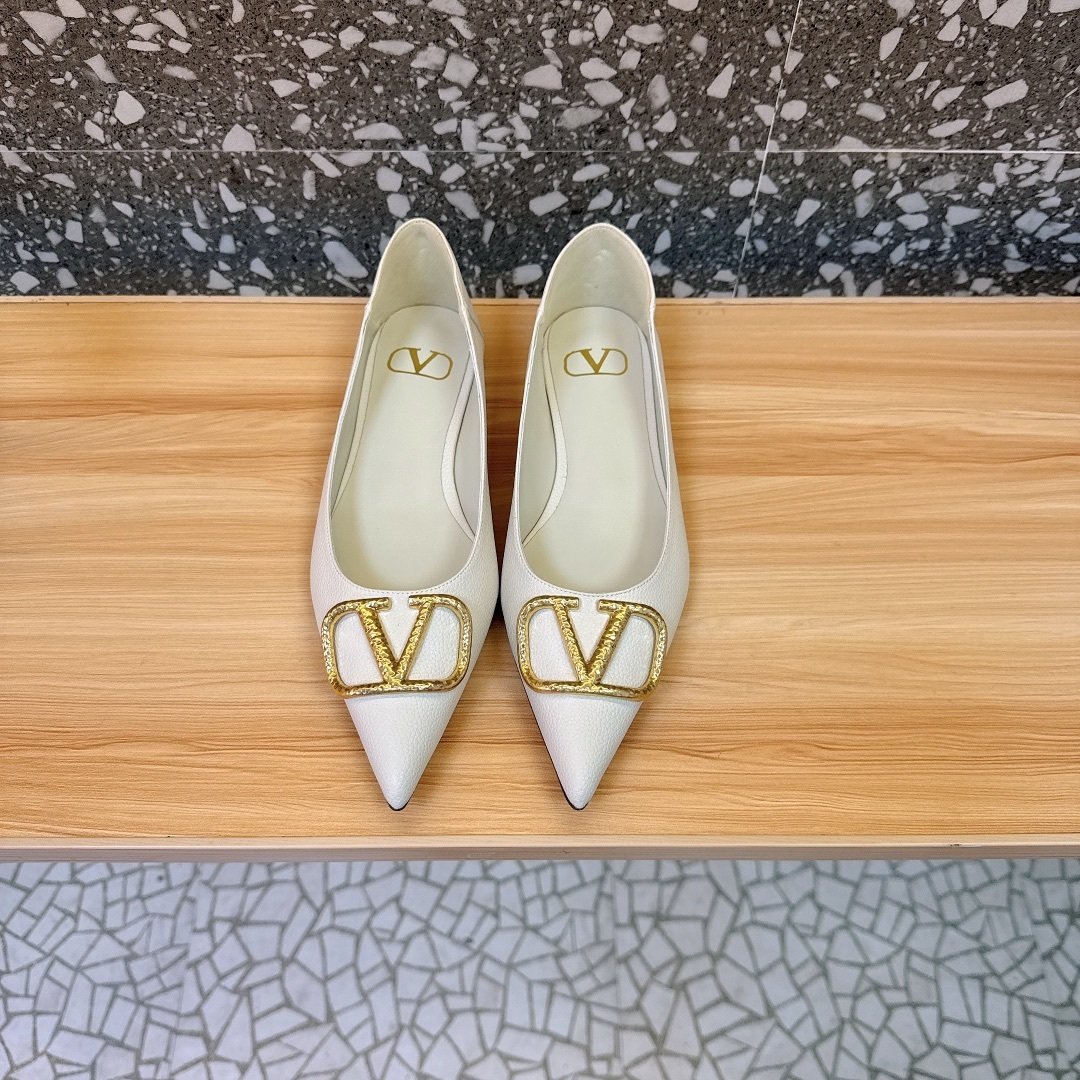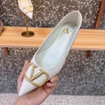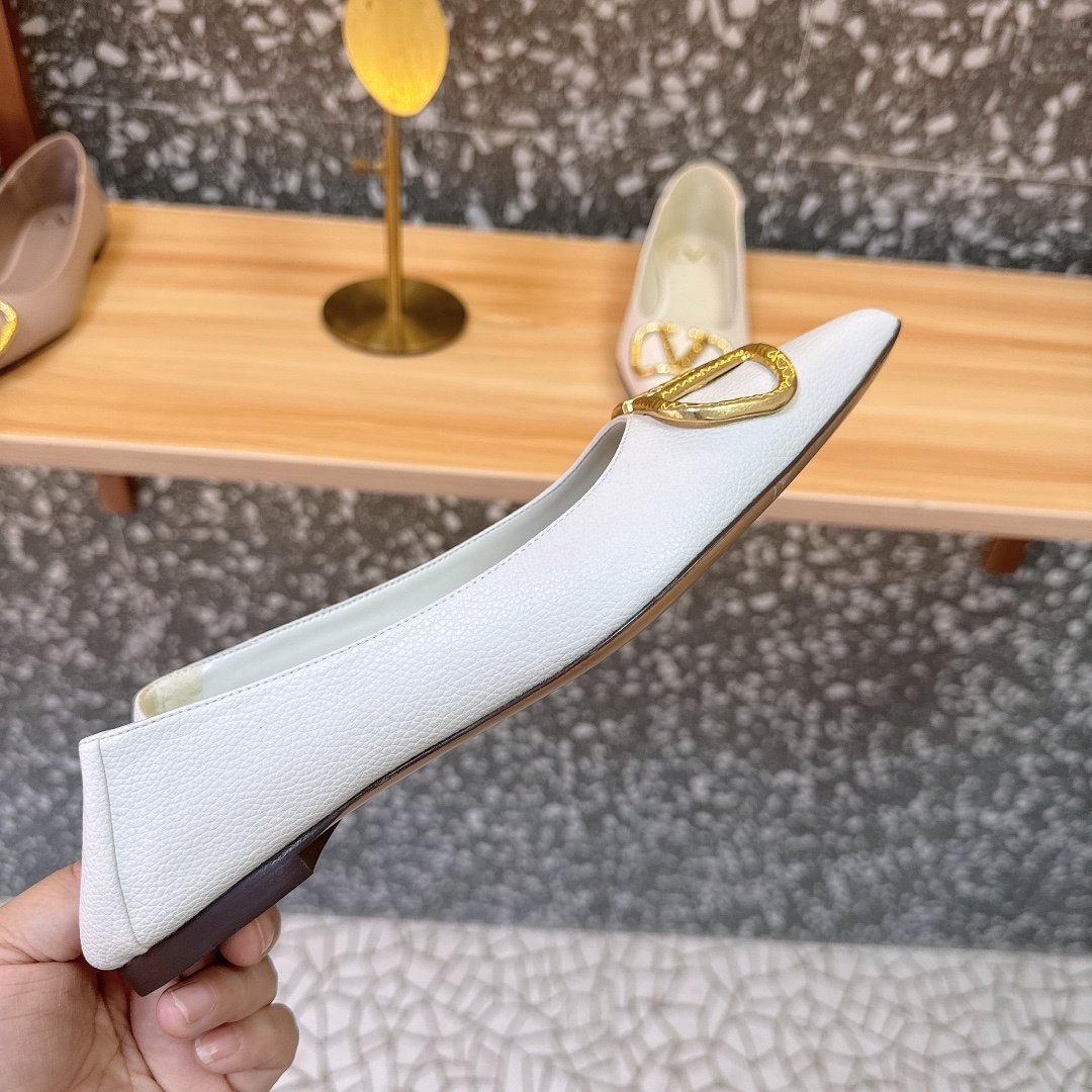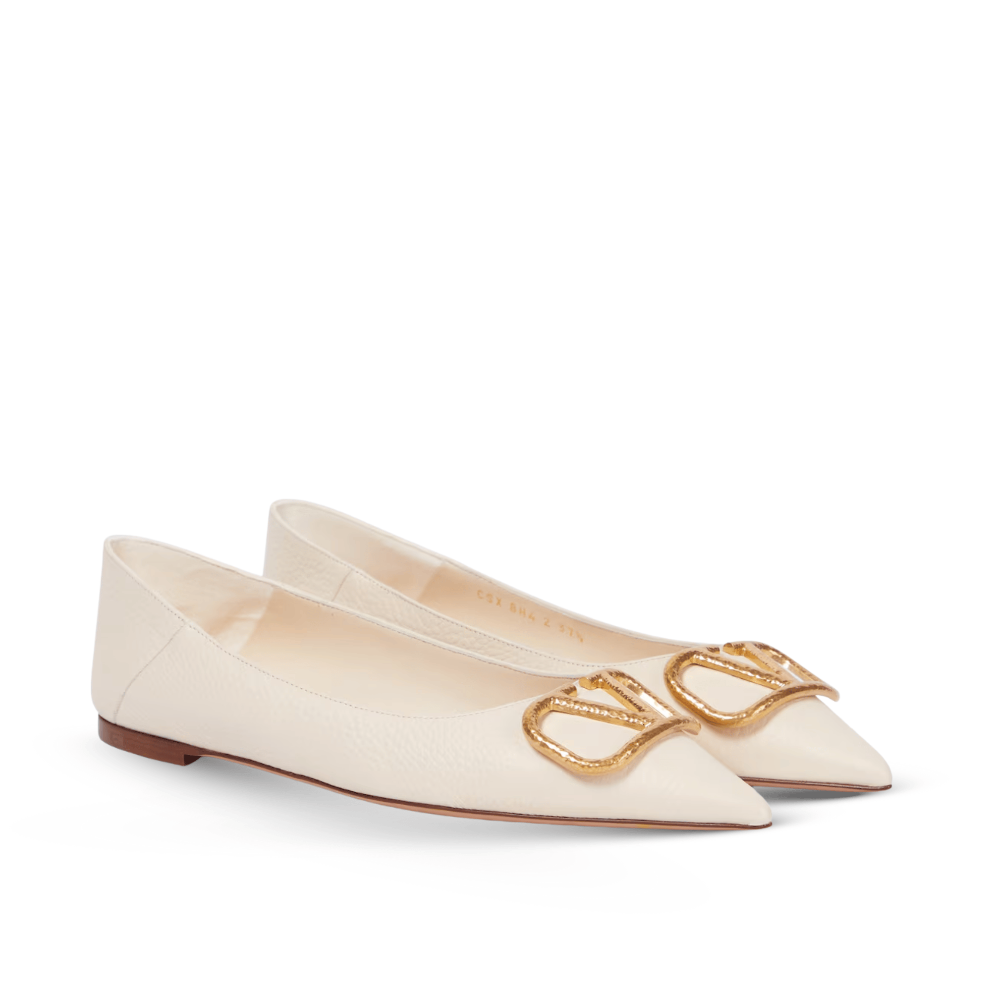 Valentino Garavani VLogo Pointed-Toe Leather Ballet Flats White