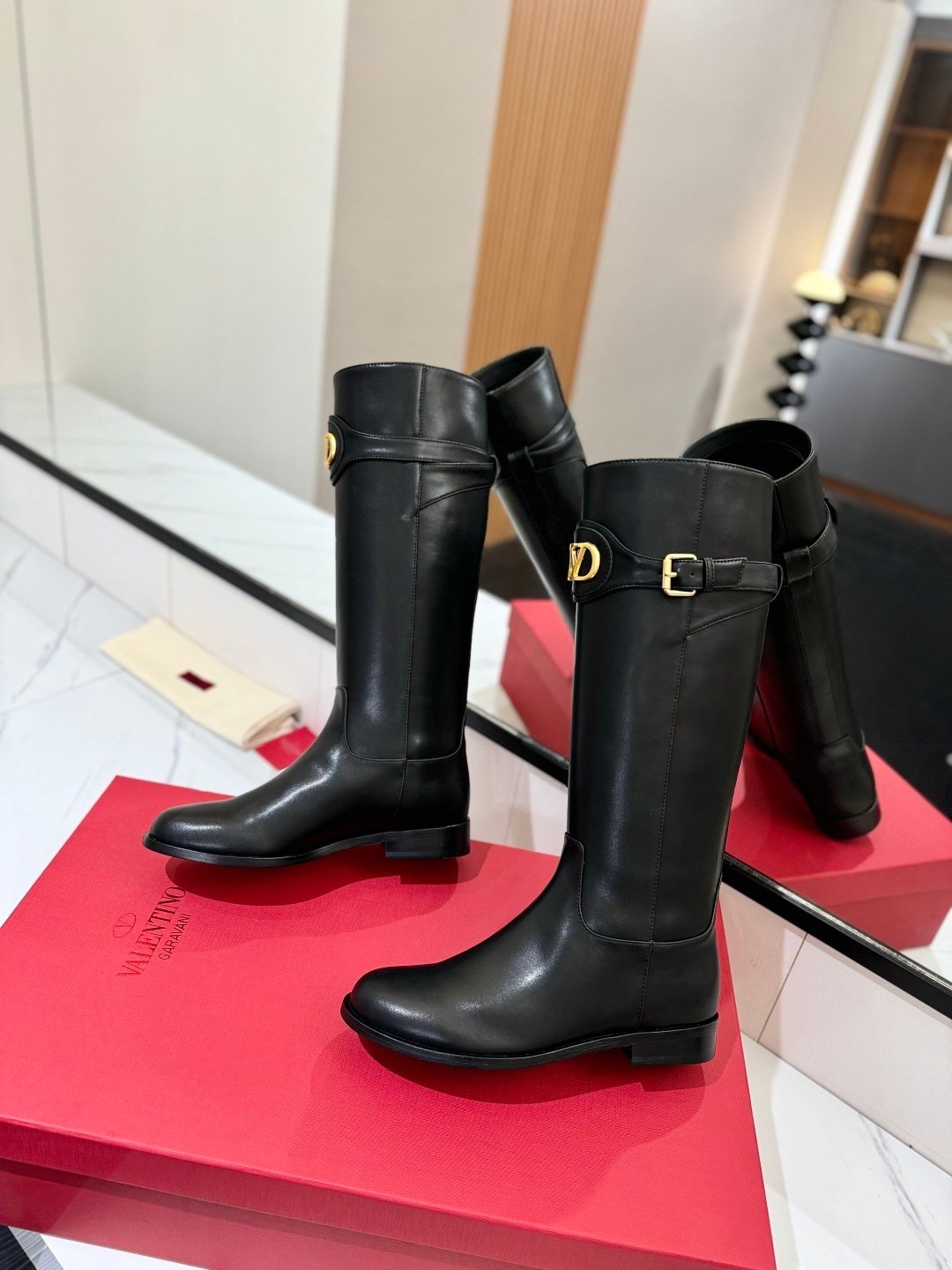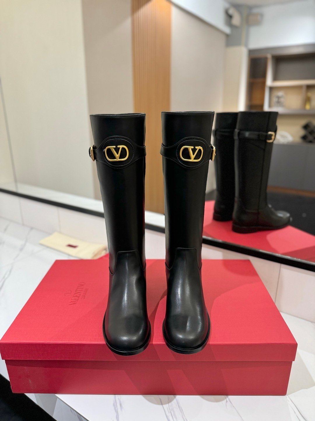 Valentino Garavani VLogo Signature Calfskin Knee Boots Black – Heel 30mm