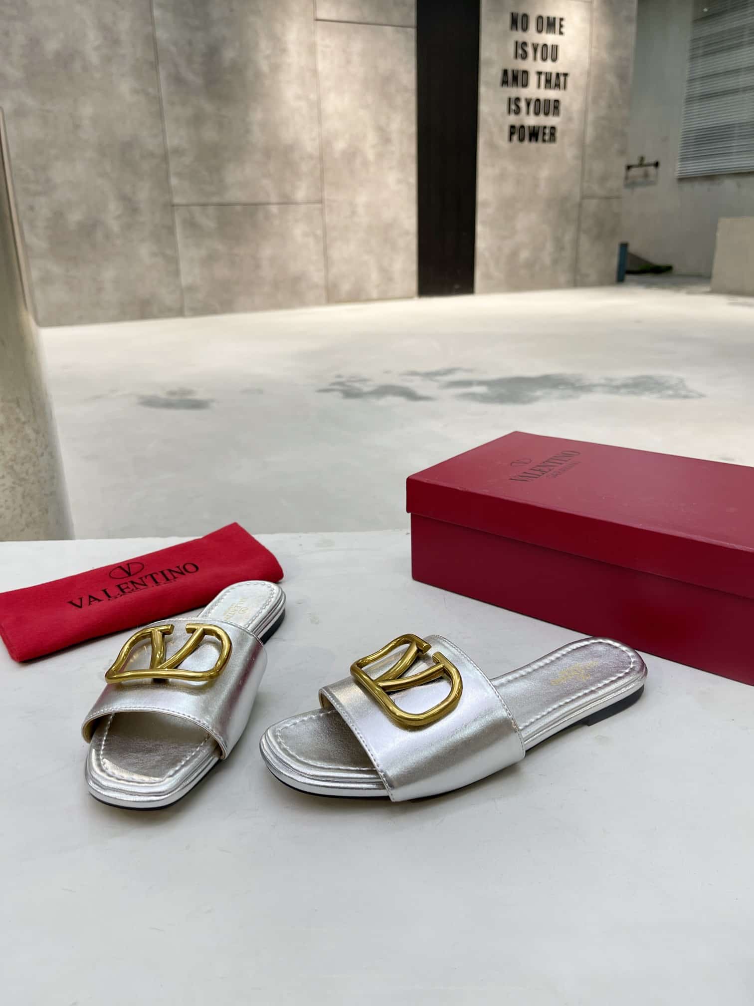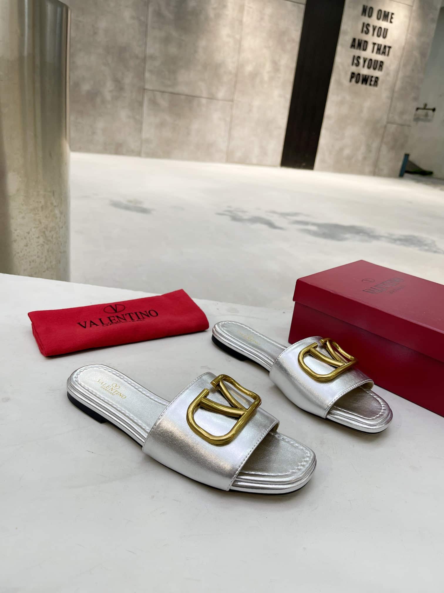 Valentino Garavani Vlogo Signature Slide Sandal Silver