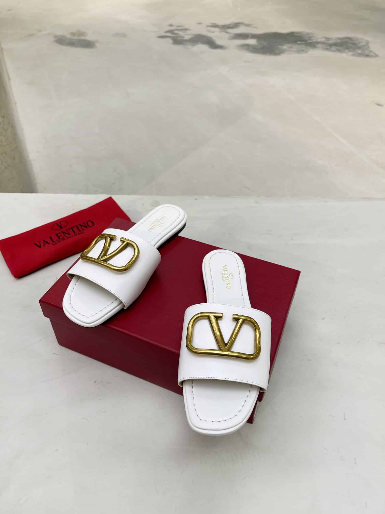 Valentino Garavani Vlogo Signature Slide Sandals White