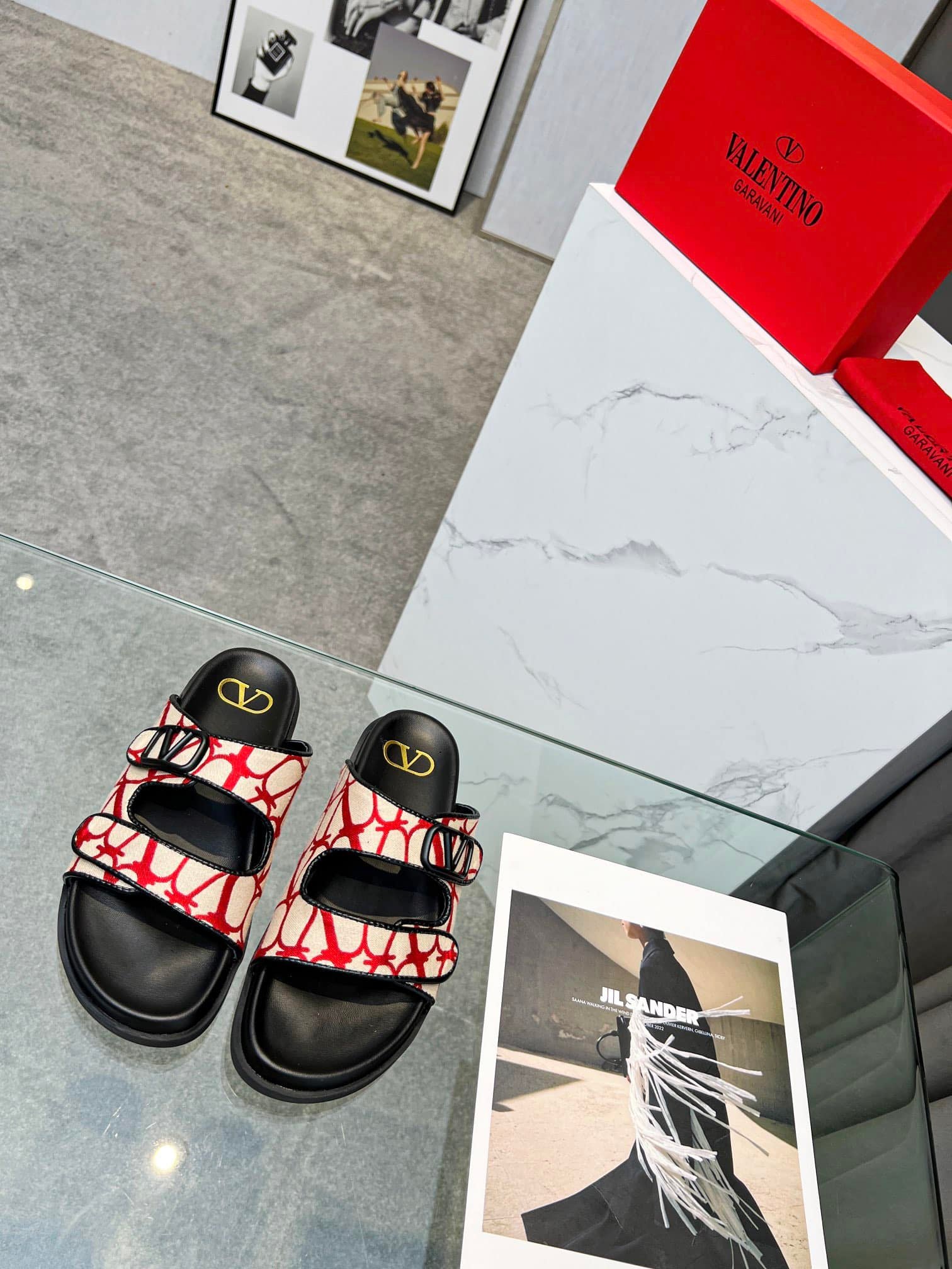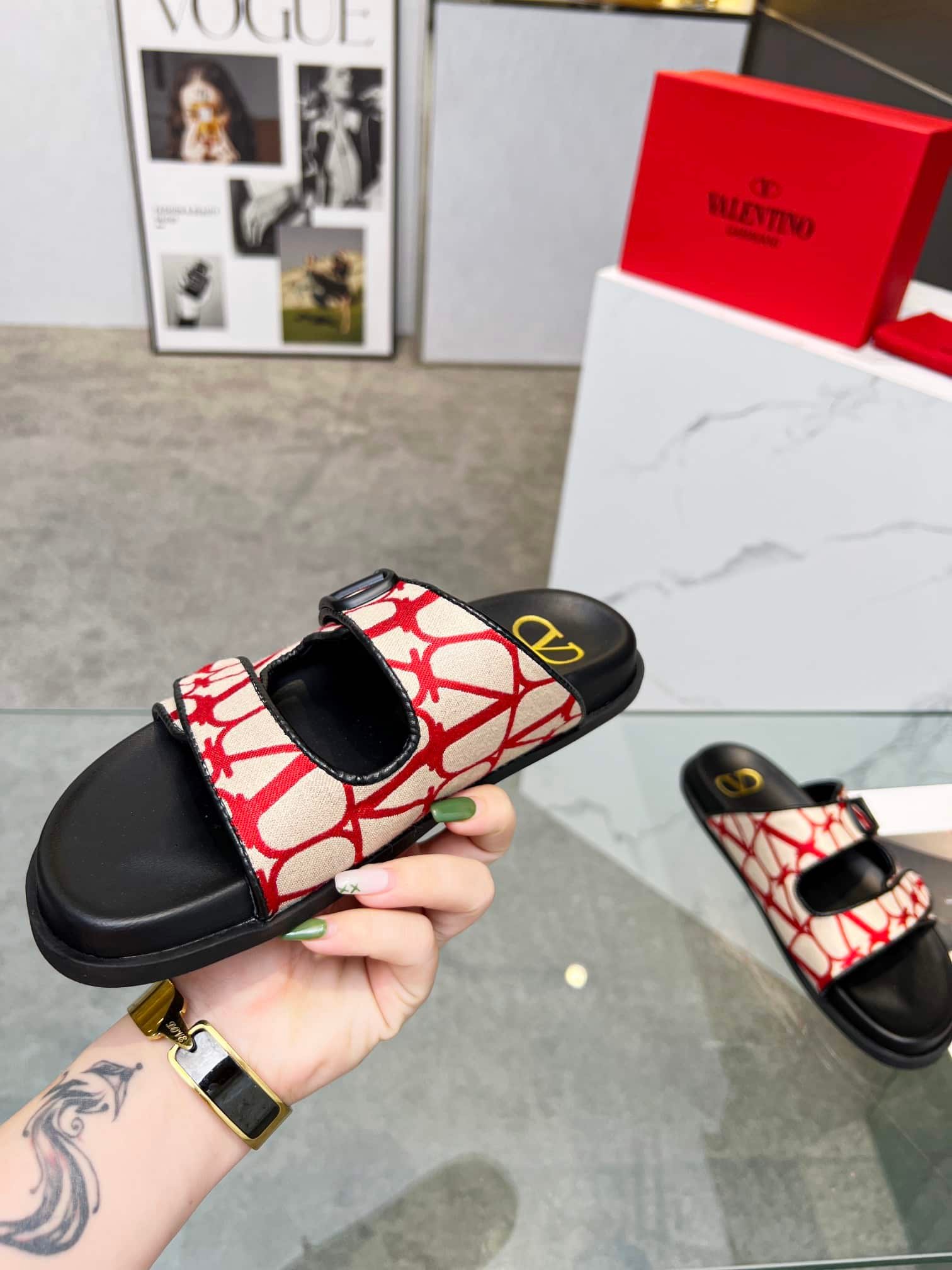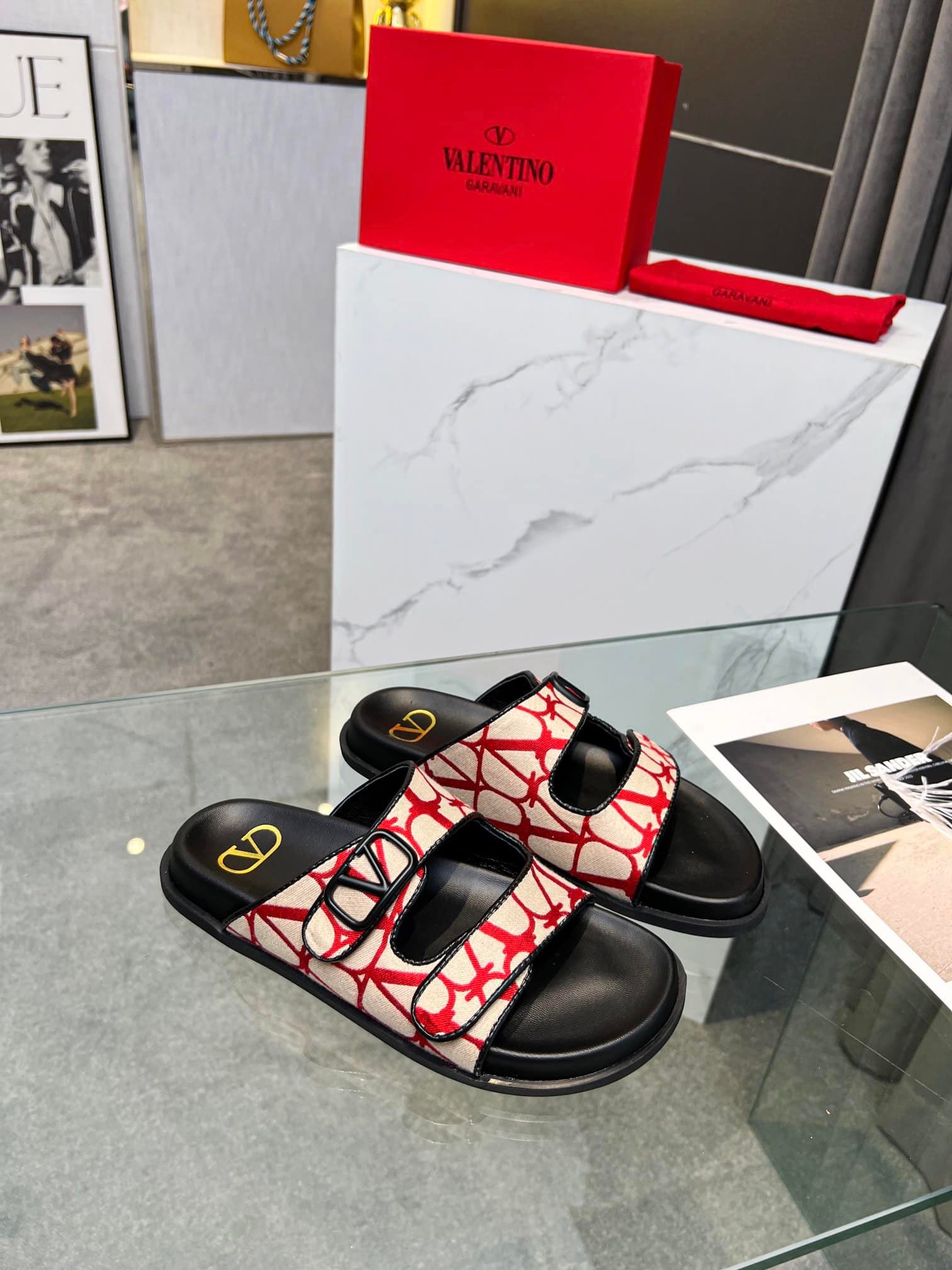 Valentino Garavani Vlogo Toile Iconographe Sandal Red