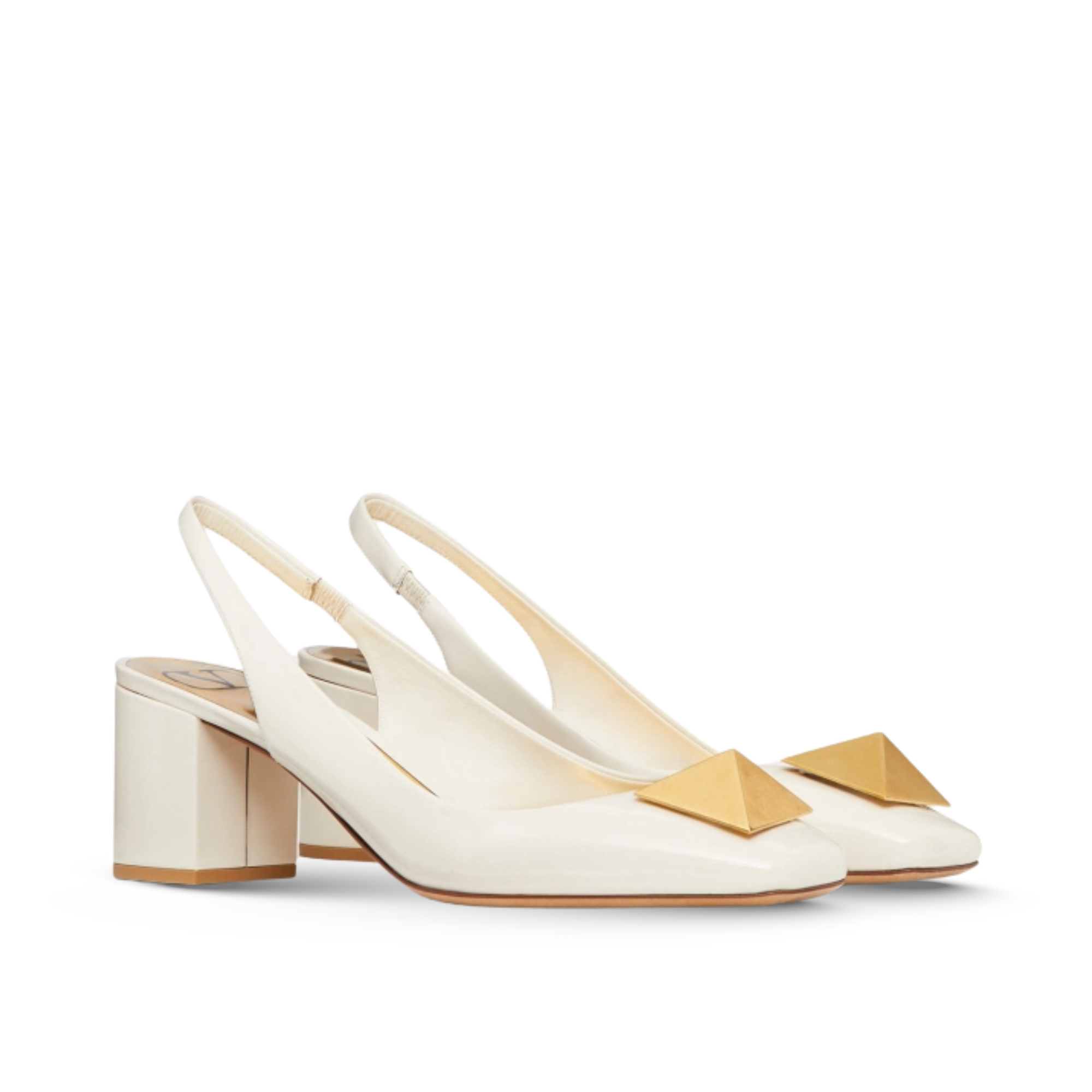 Valentino One Stud Patent-Leather Slingback Pump White