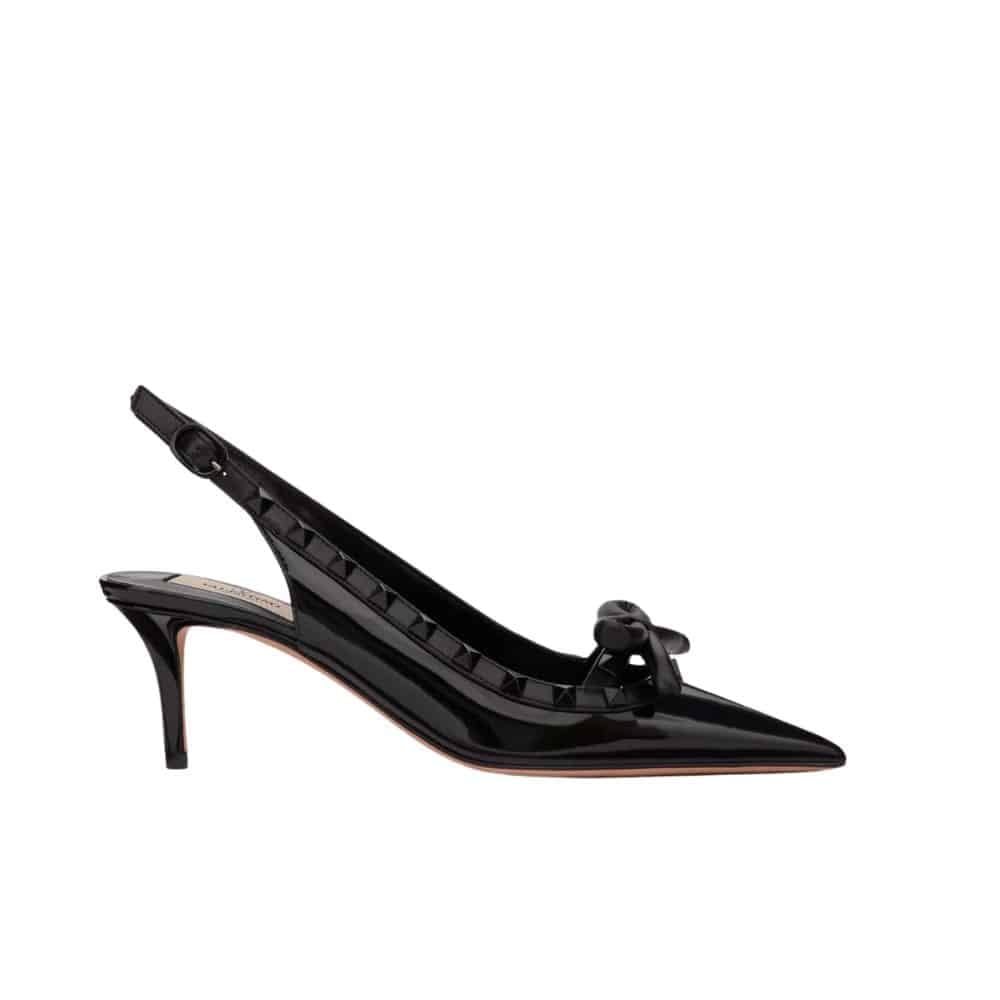 Valentino Rockstud Bow Slingback Pump In Patent Leather With Matching Studs Black 4W2S0Ib8Ixh 0No