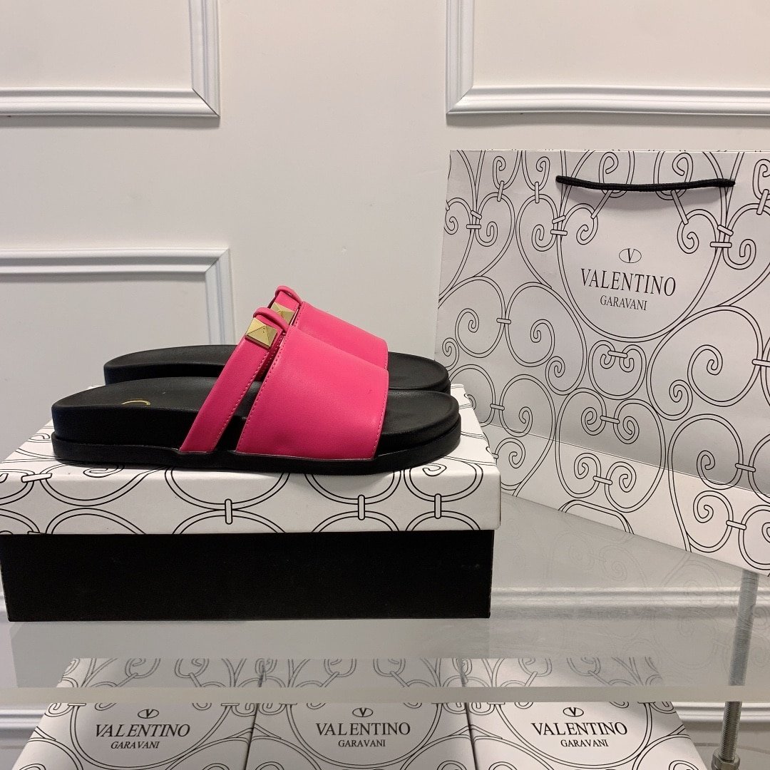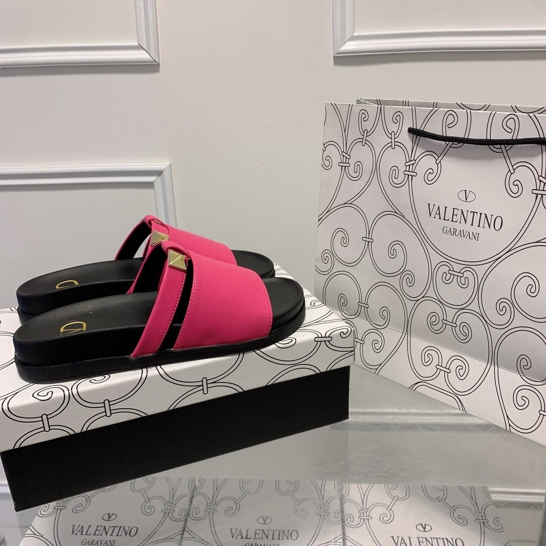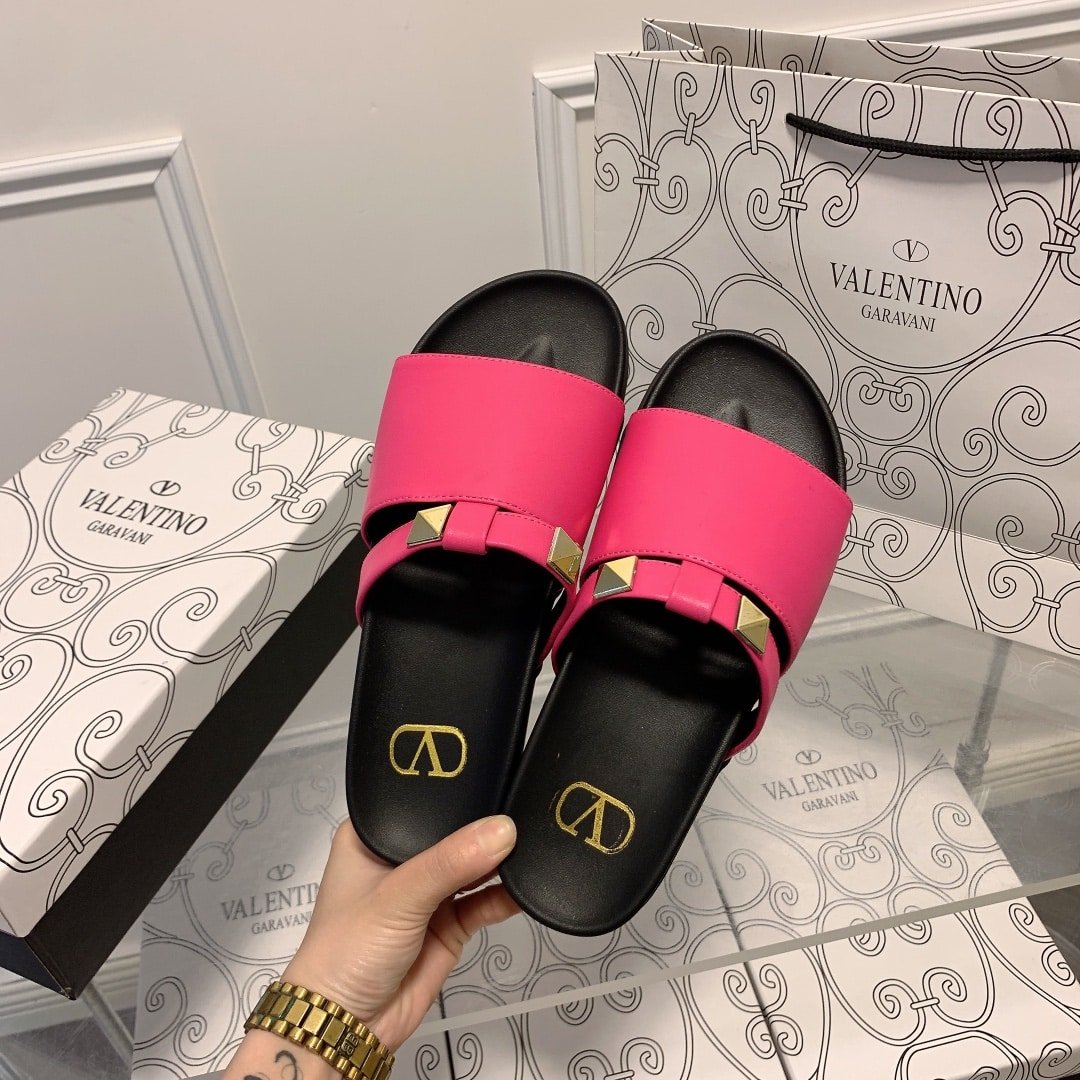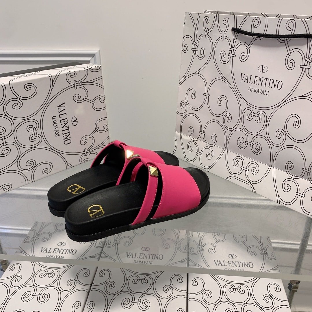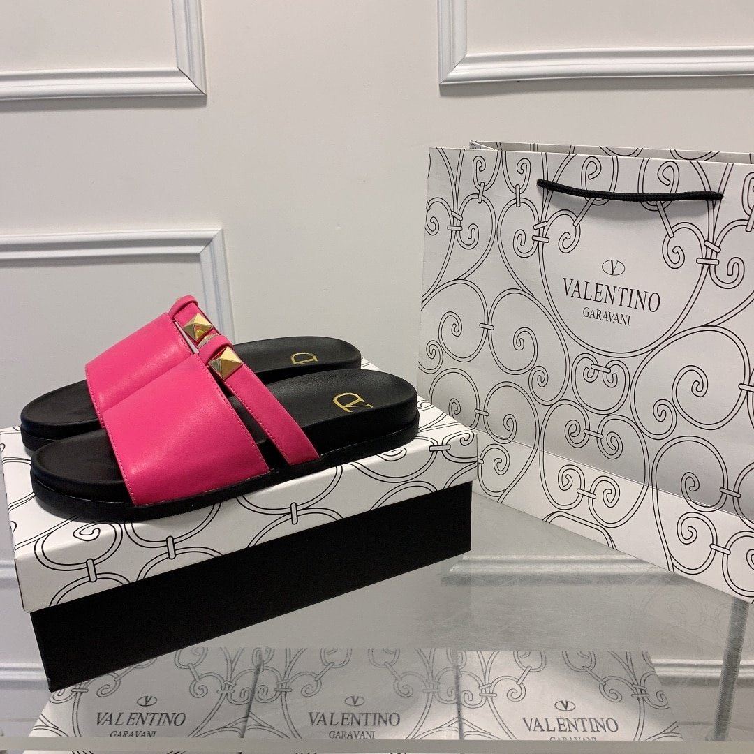 Valentino Rockstud Pink Slide Sandals