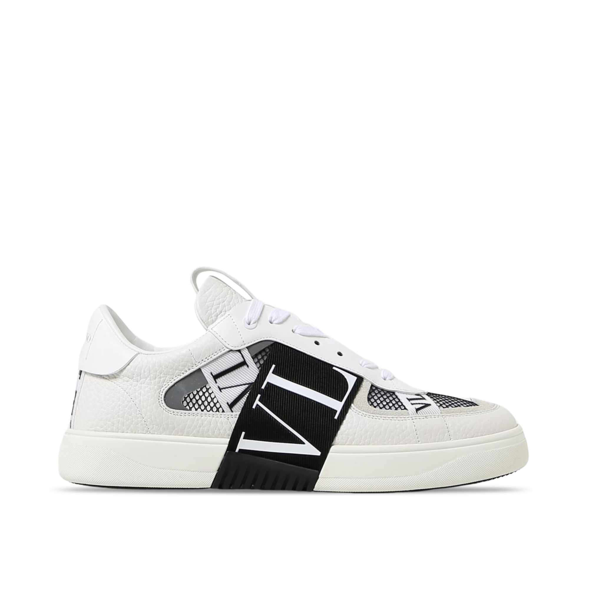 Valentino Vl7N Low-Top Sneaker In Calfskin And Mesh Fabric With Bands Black