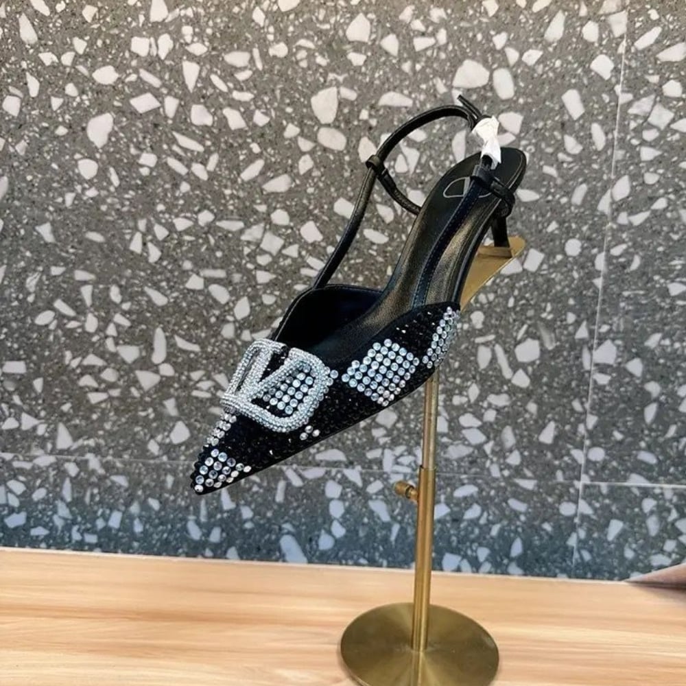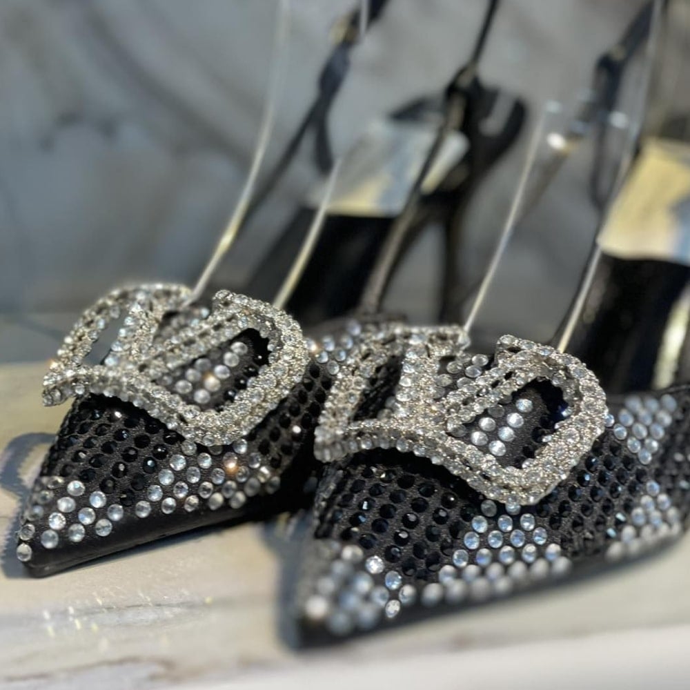 Valentino Vlogo Signature Back Strap Crystal High Heels Black