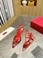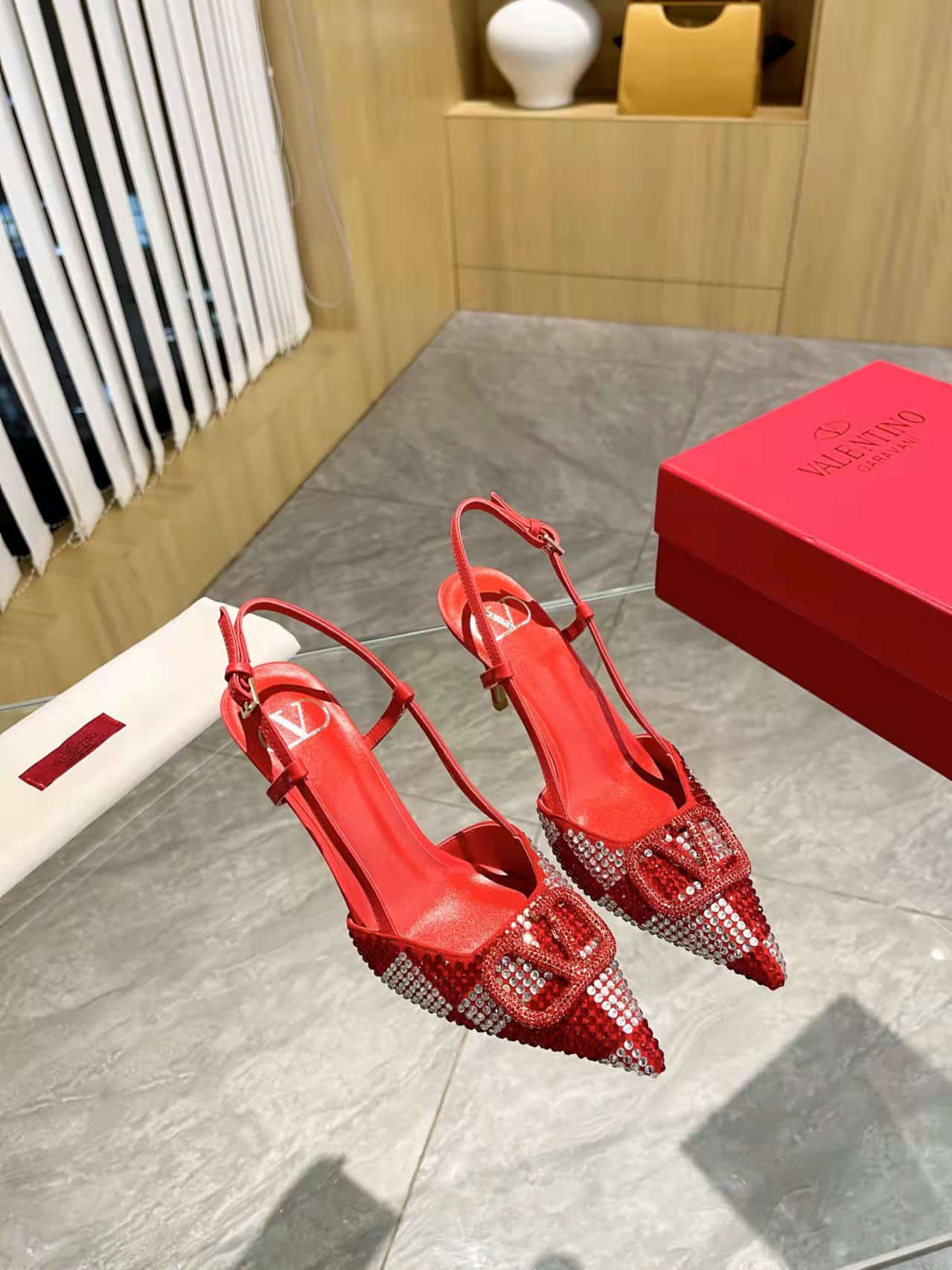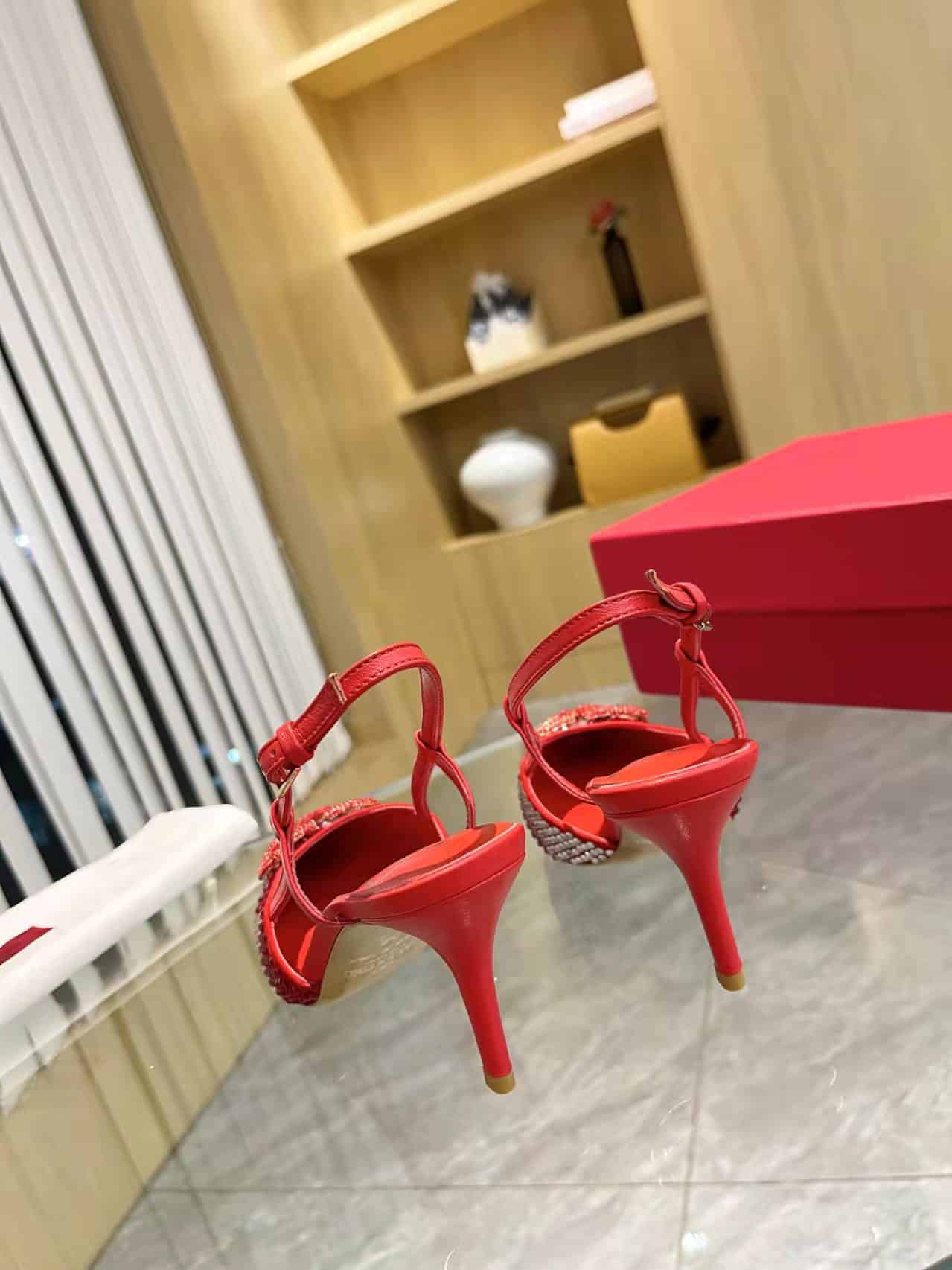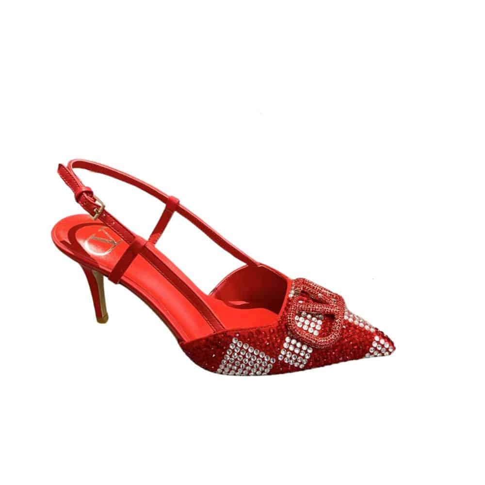 Valentino Vlogo Signature Back Strap Crystal High Heels Red