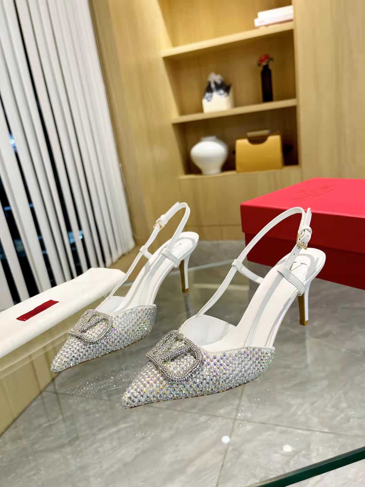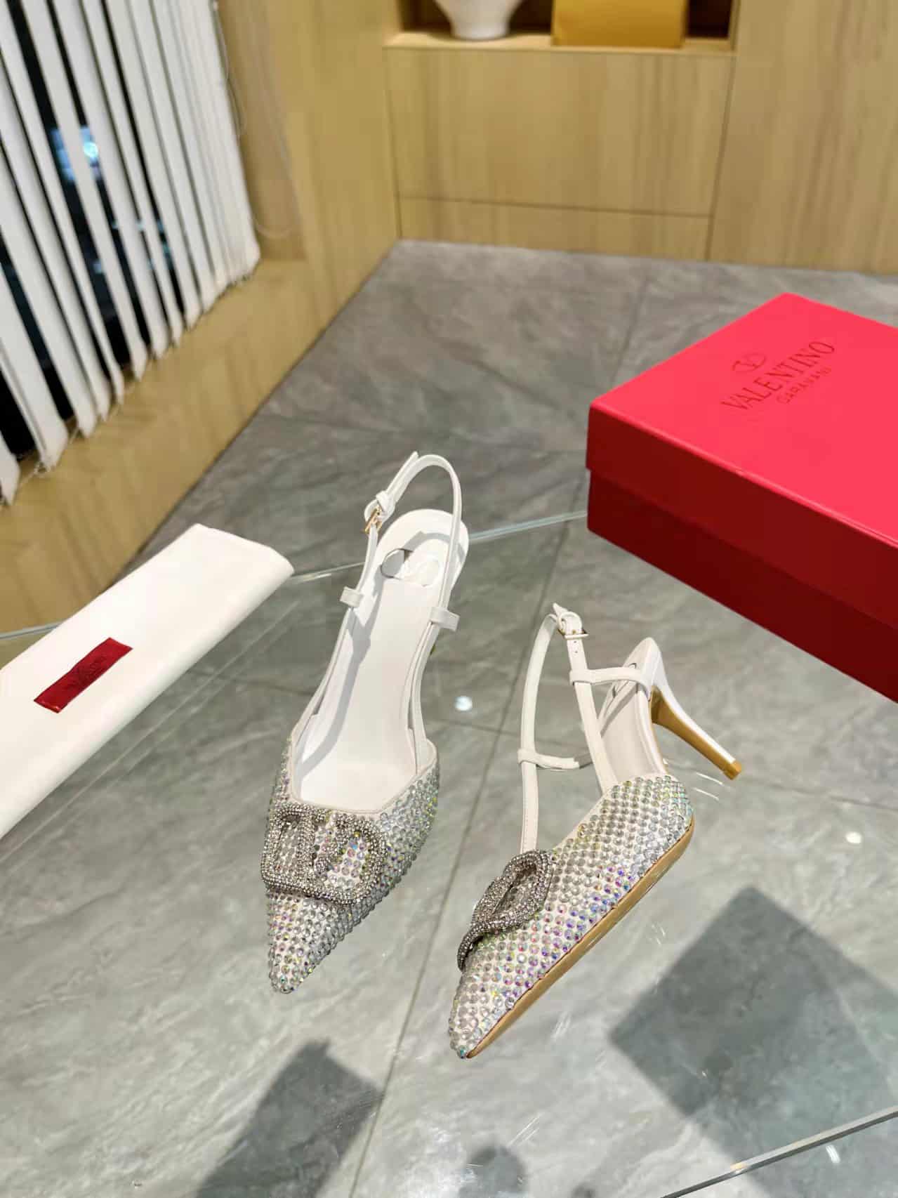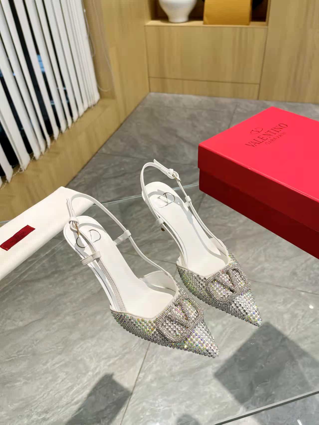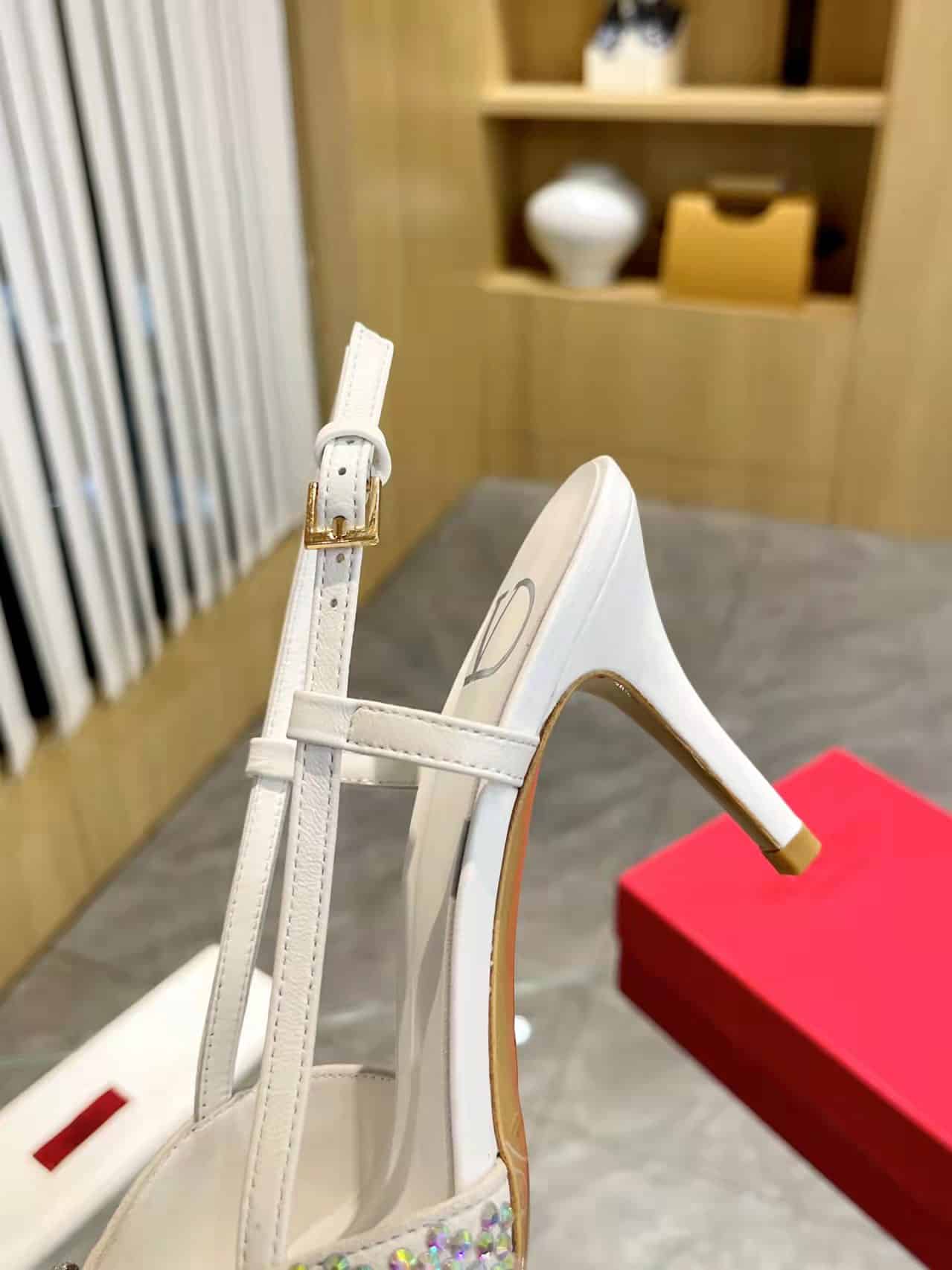 Valentino Vlogo Signature Back Strap Crystal High Heels White