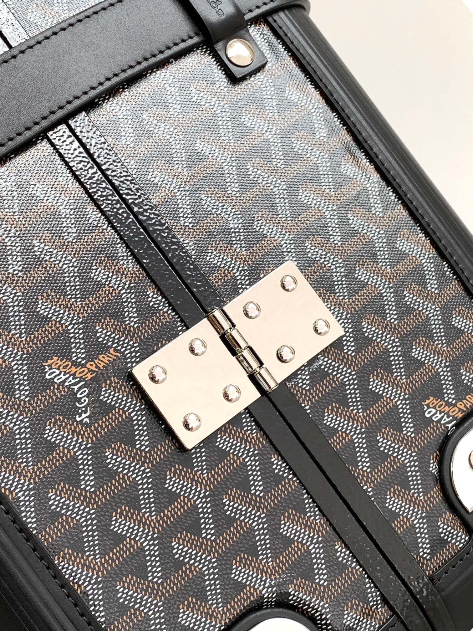 Goyard 50cm Goyardine Canvas & Clamecy Cowhide Bourget PM Trolley Case Black