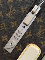 Travel with refined elegance using the Horizon 55 Carry-On Suitcase in Monogram Brown with Beige trim. This premium cabin luggage features the classic monogram canvas paired with light beige leather-style corners and handle, creating a softer, more luxurious contrast.
