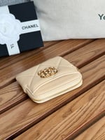 Chanel 19 Zipped Coin Purse 11Cm Cream Lambskin Gold Hardware