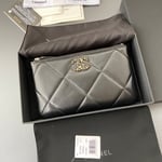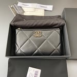 Chanel 19 Zipped Wallet 20Cm Black Calfskin Gold Hardware