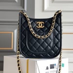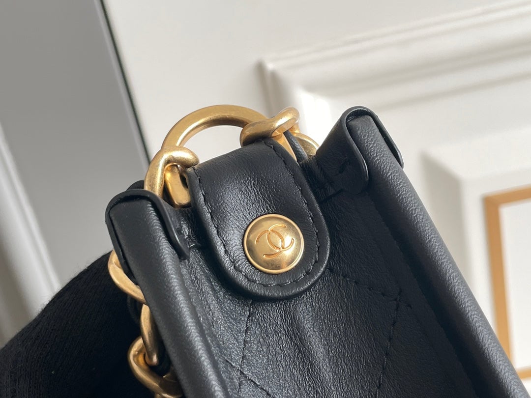 Chanel 24S 24Cm Hobo Bag Black Calfskin Gold Hardware