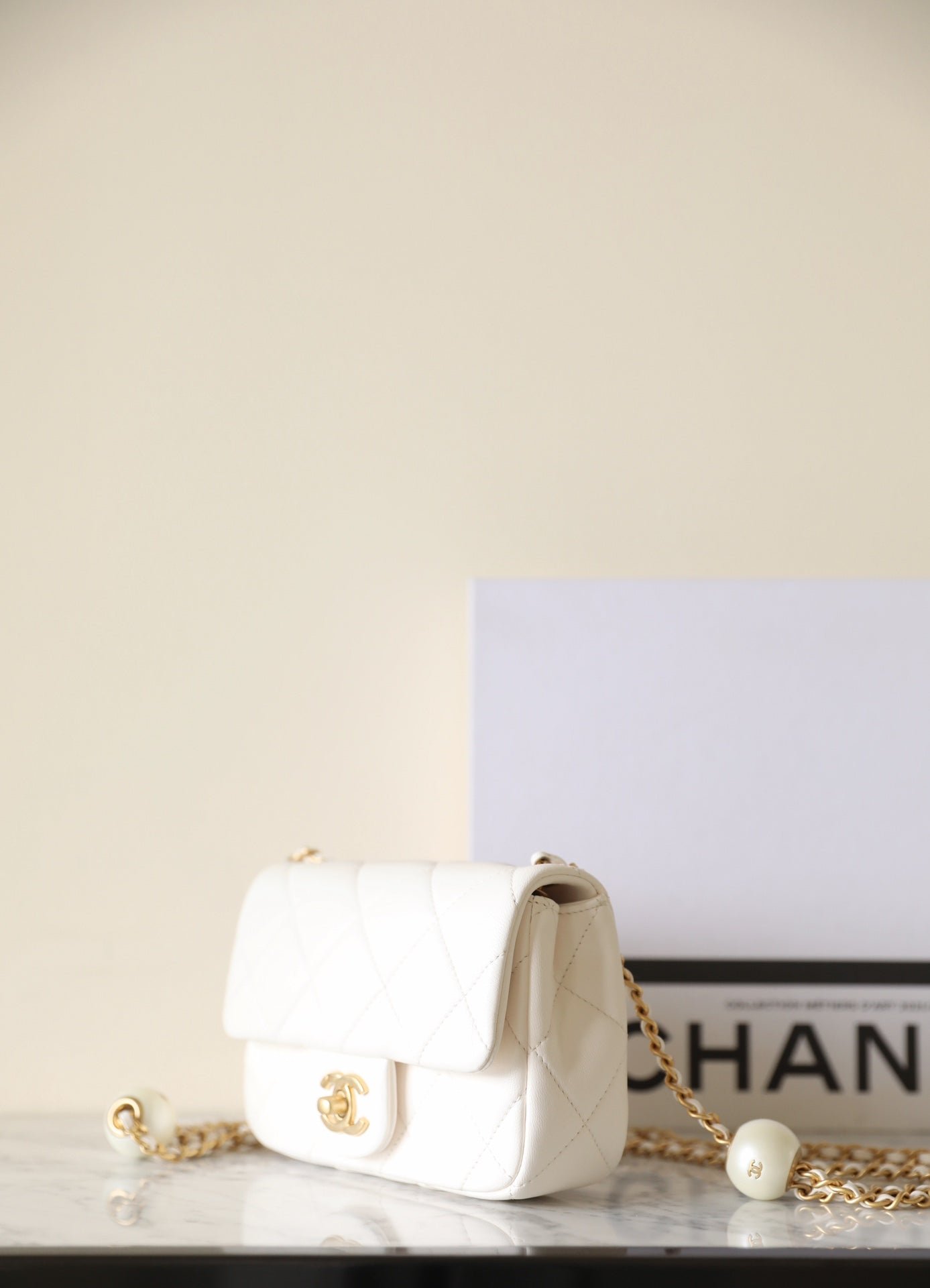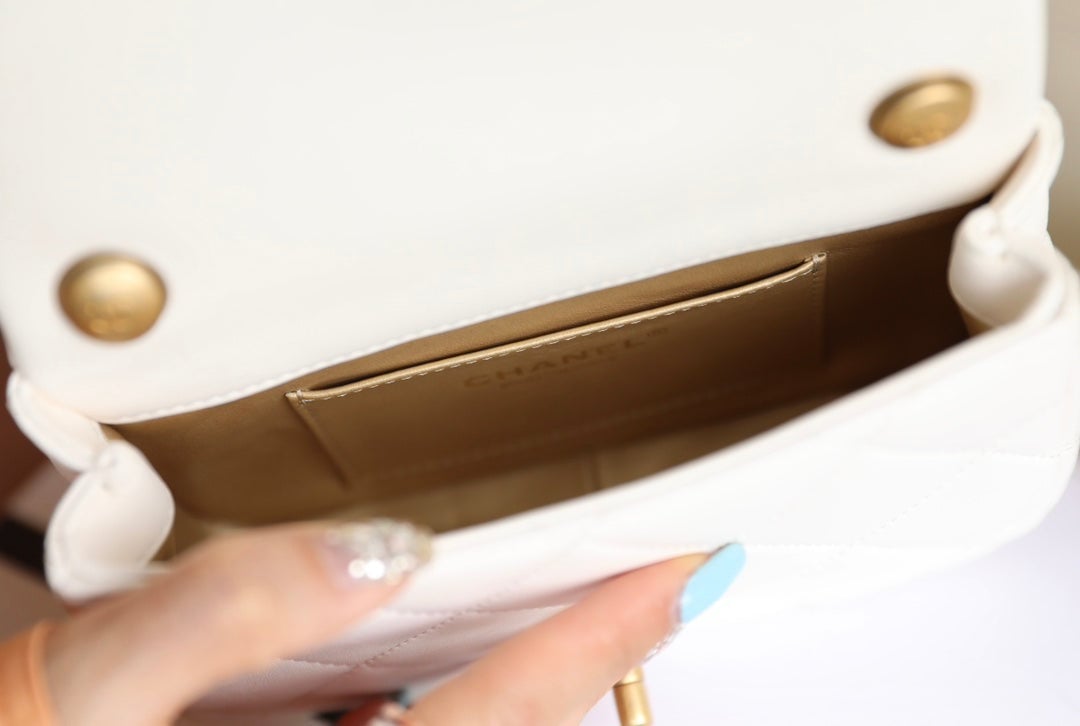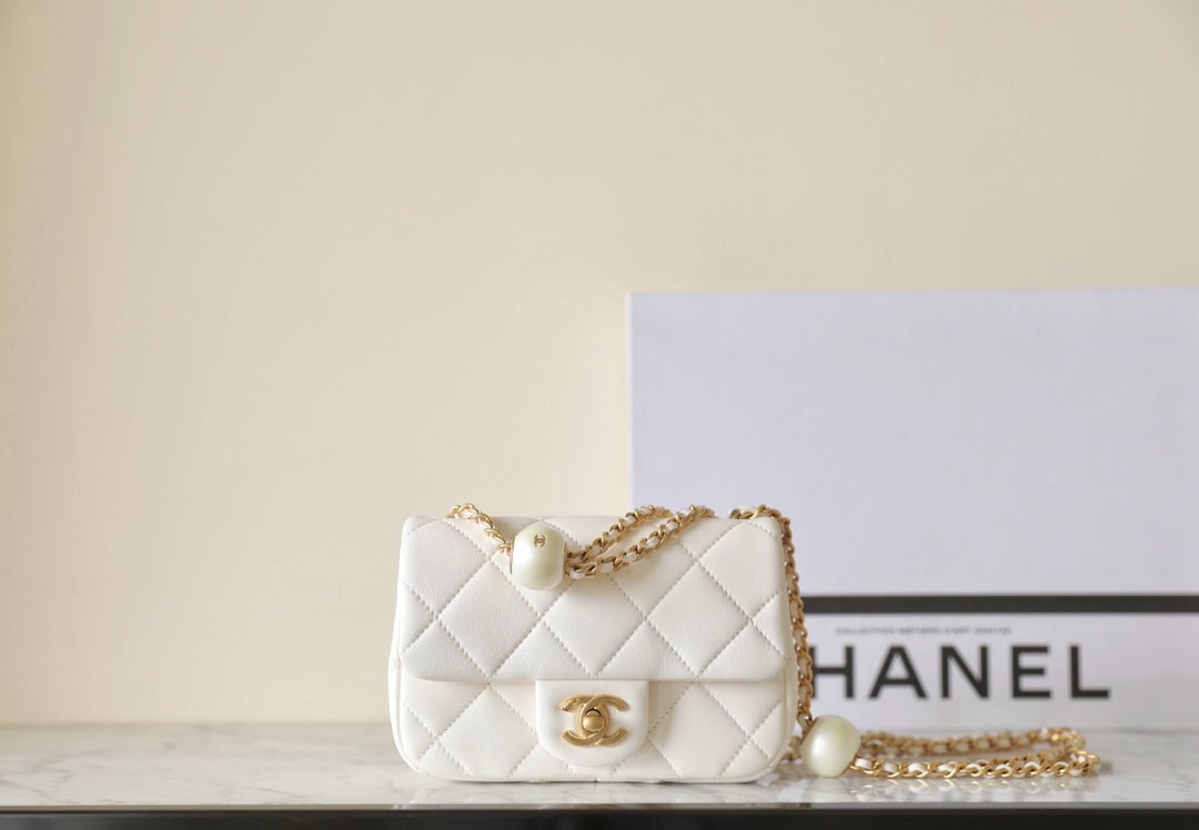 Chanel 24S Mini Flap Bag 17Cm White Lambskin Pearl Ball