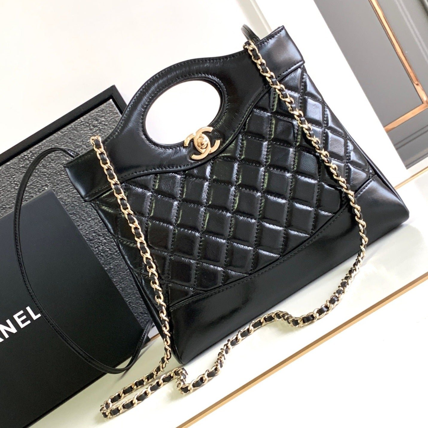Chanel 24S31 Mini Shopping Bag 22Cm Black Lambskin Gold Hardware