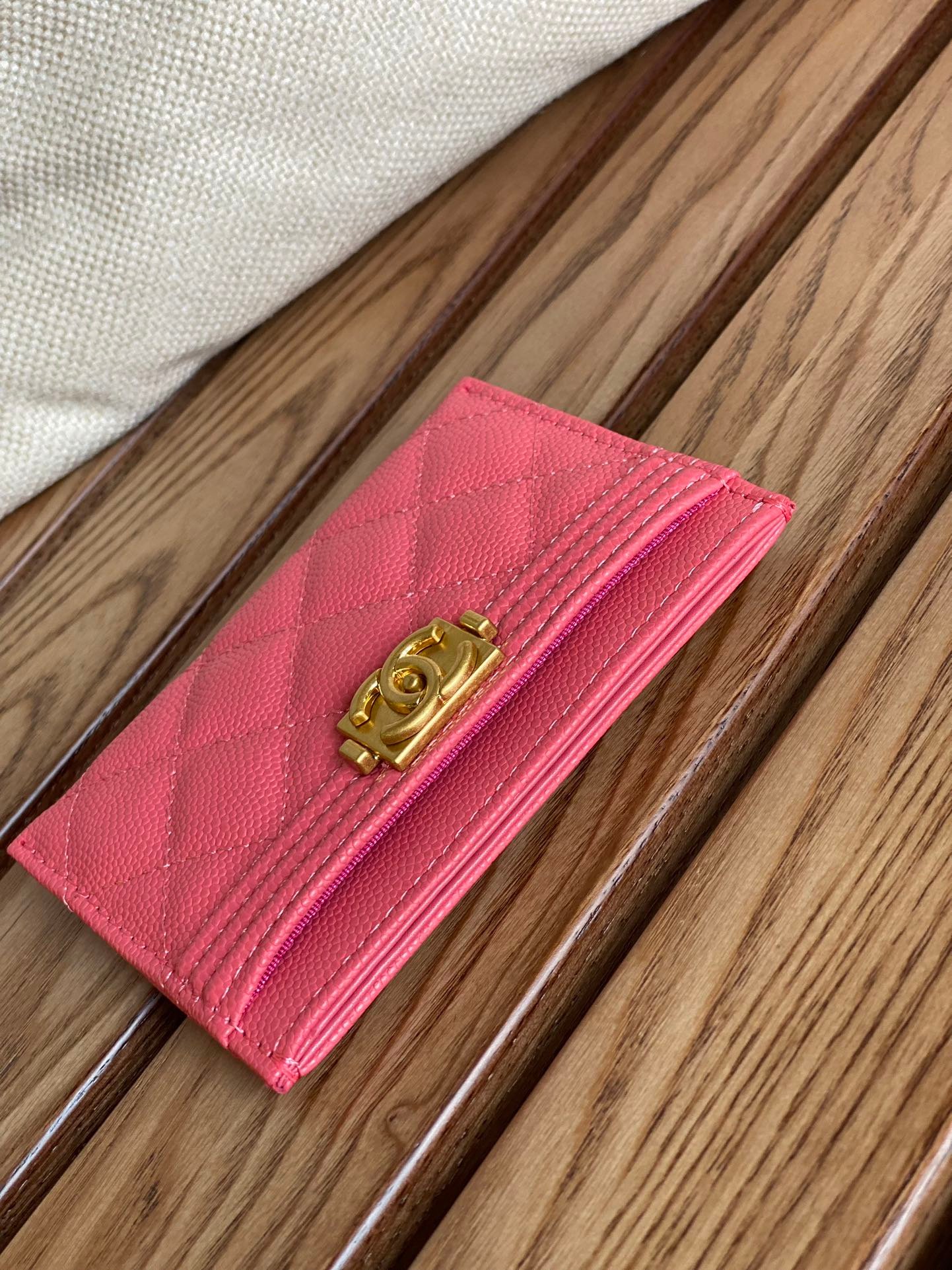 Chanel Boy 11Cm Card Holder Pink Caviar Gold Hardware