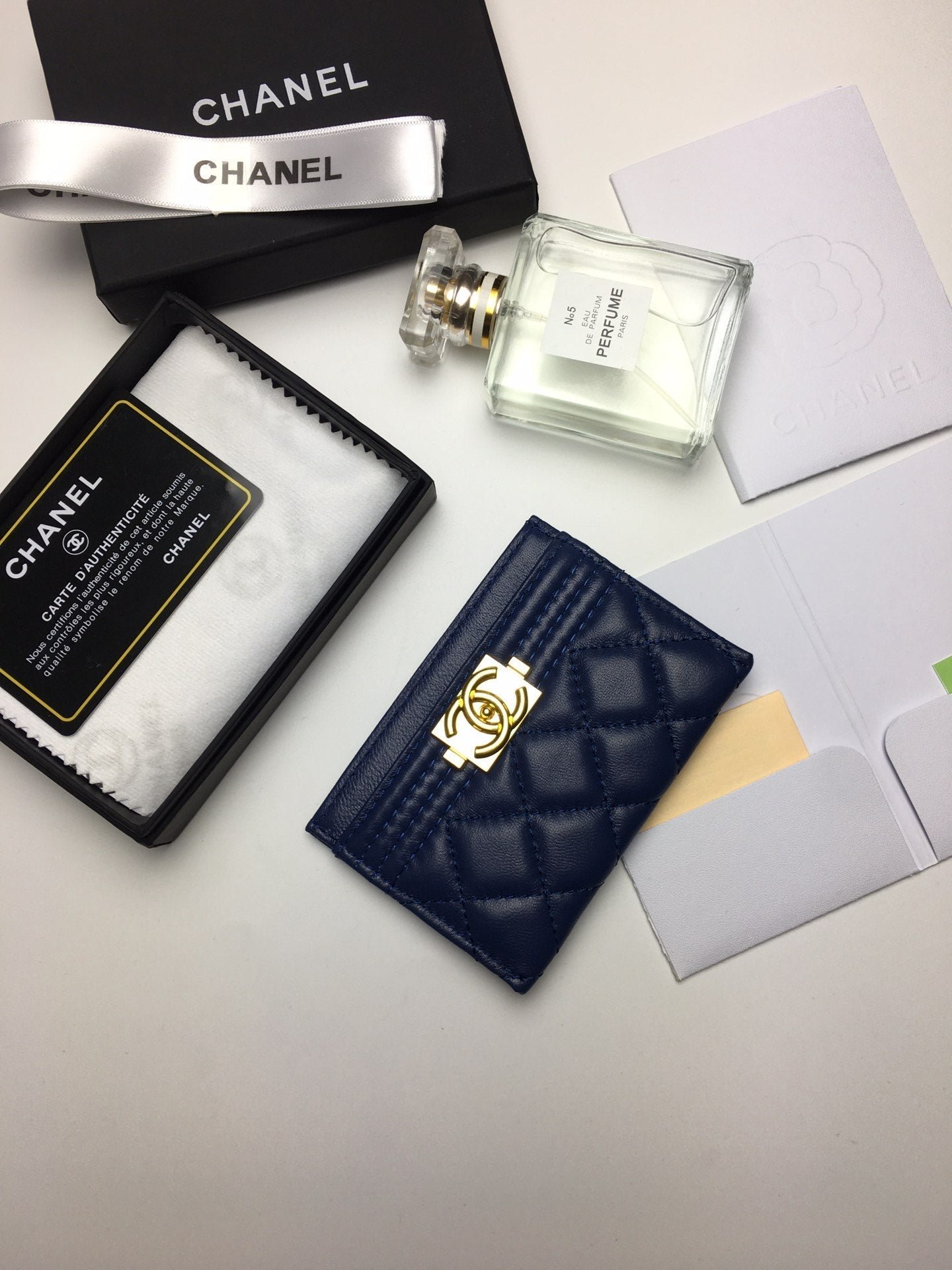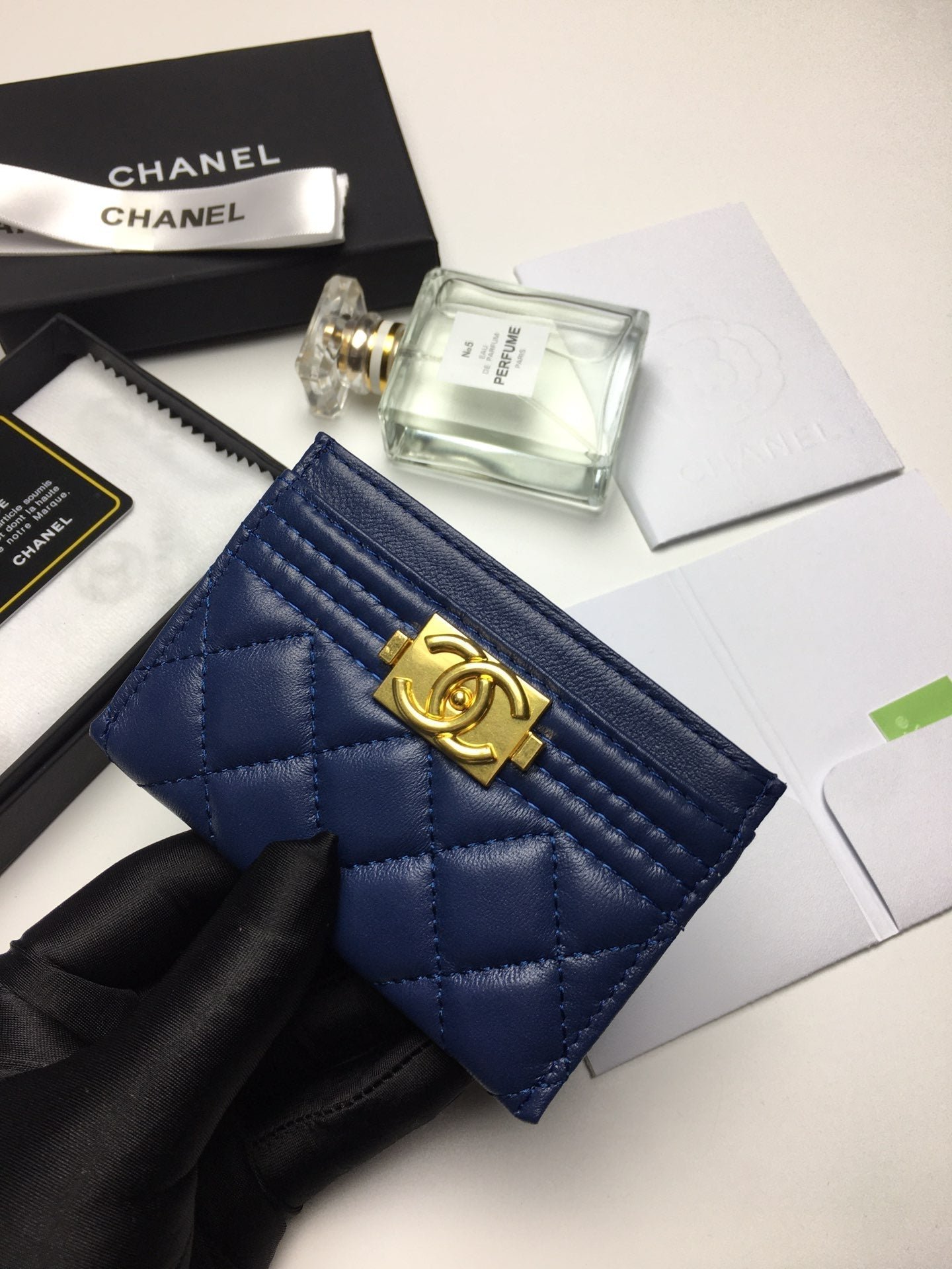 Chanel Boy Card Holder 11.2 Navy Calfskin Gold Icon