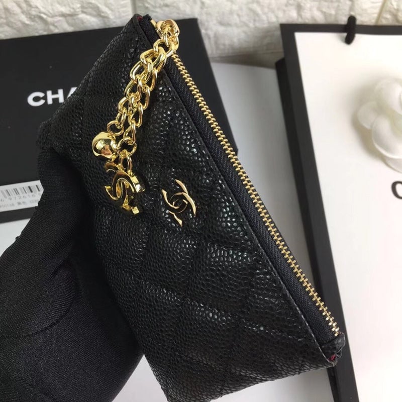 Home Shop Wallets Chanel Wallets Chanel Classic Small Zipped Pouch 15 Black Calfskin Gold Icon