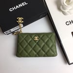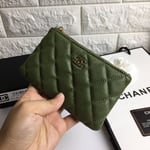 Home Shop Wallets Chanel Wallets Chanel Classic Small Zipped Pouch 15 Dark Green Calfskin Gold Icon