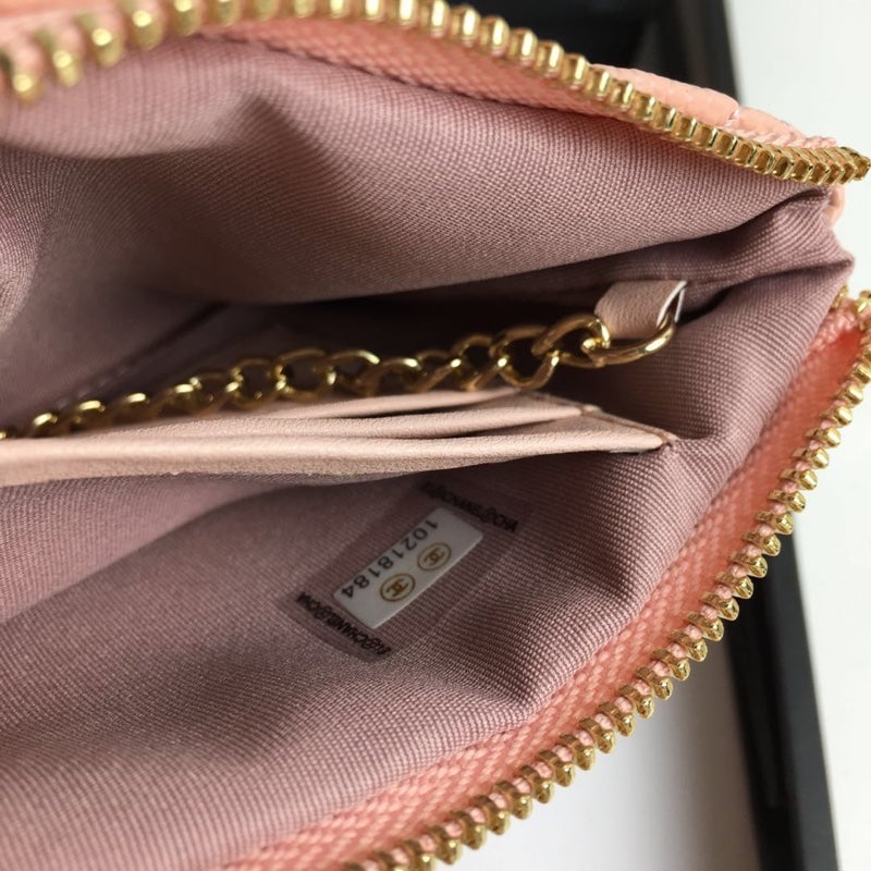 Home Shop Wallets Chanel Wallets Chanel Classic Small Zipped Pouch 15 Pale Pink Calfskin Gold Icon