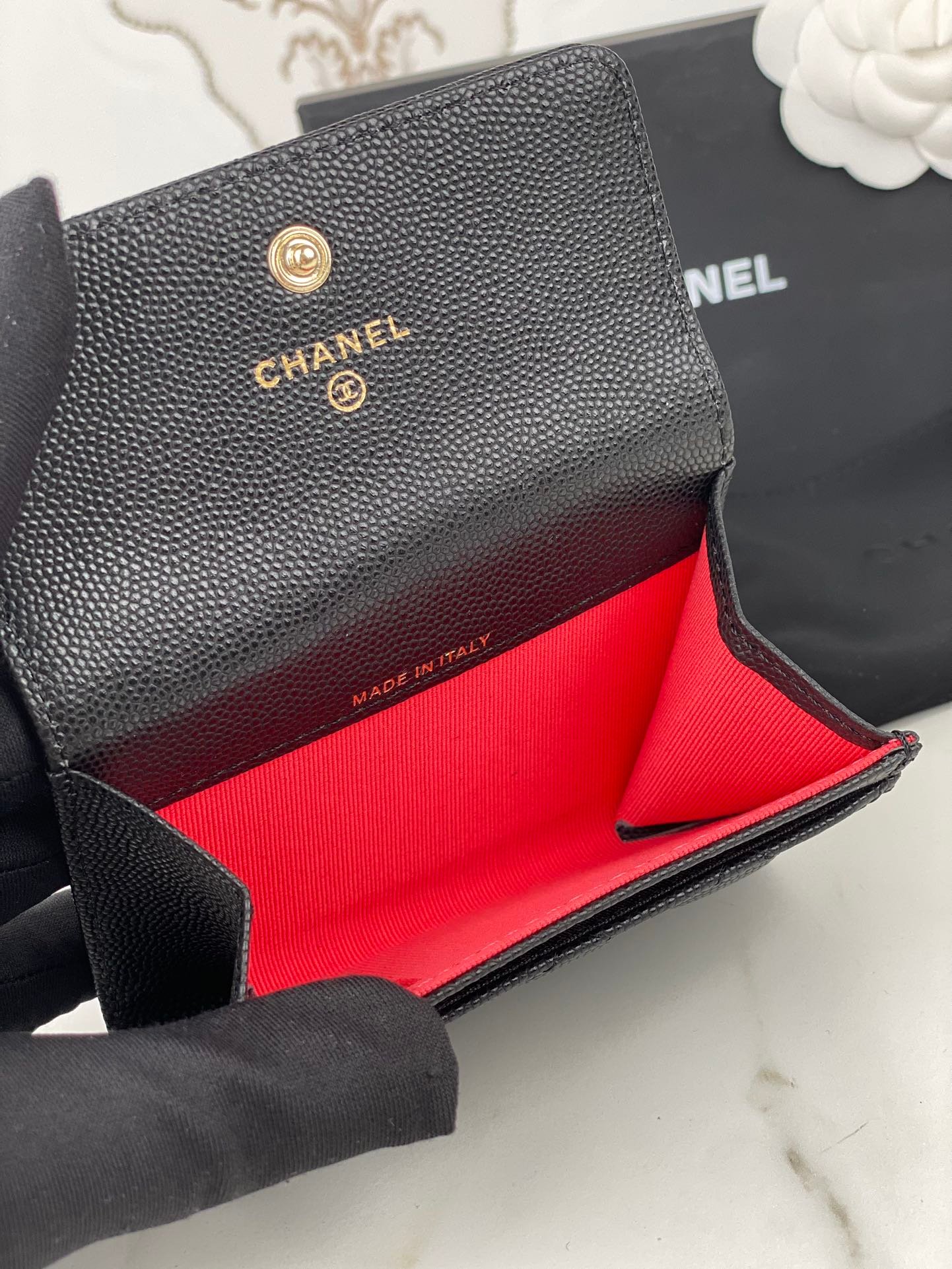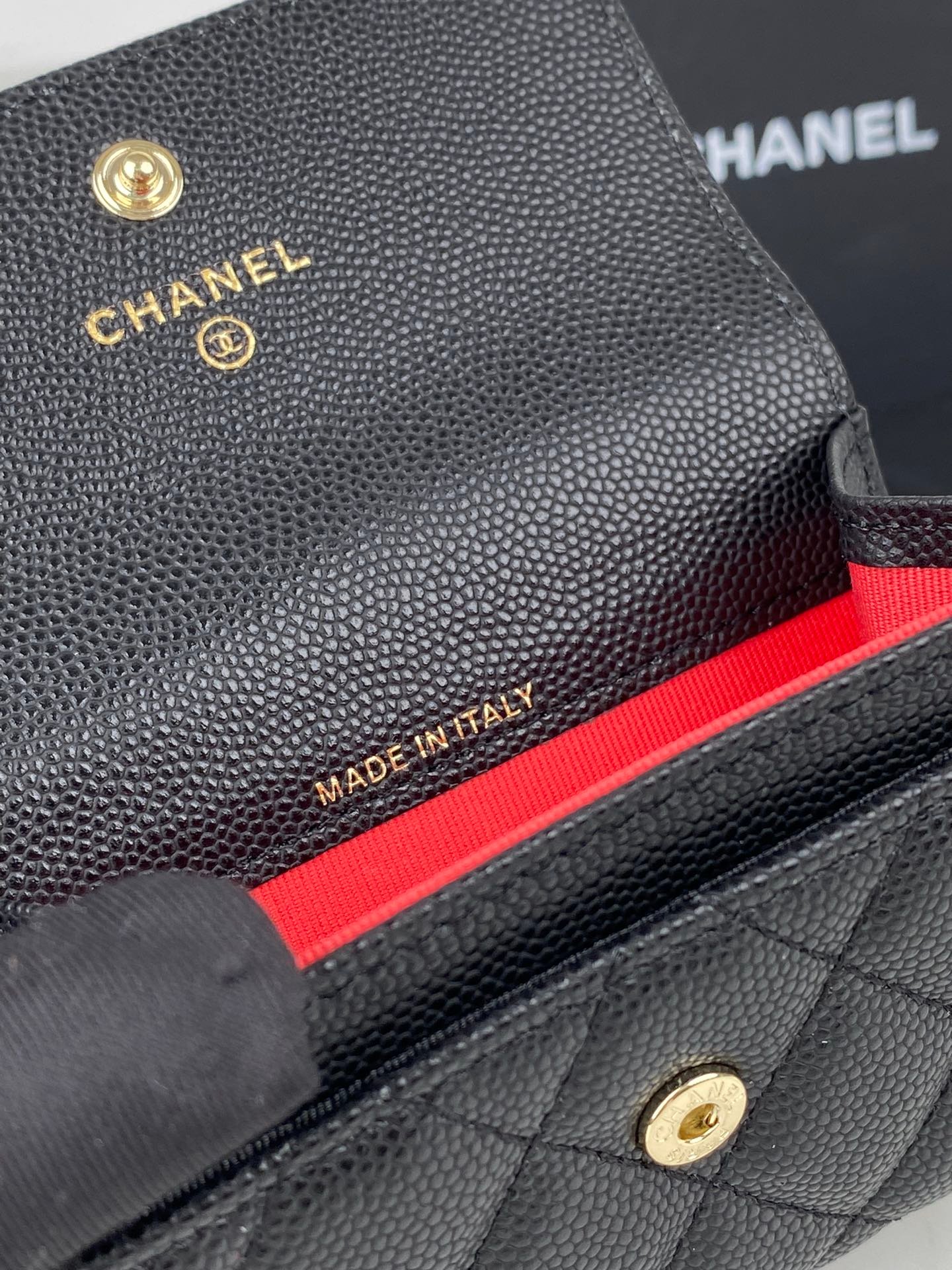 Chanel Small Wallet 11Cm Black Caviar Gold Hardware