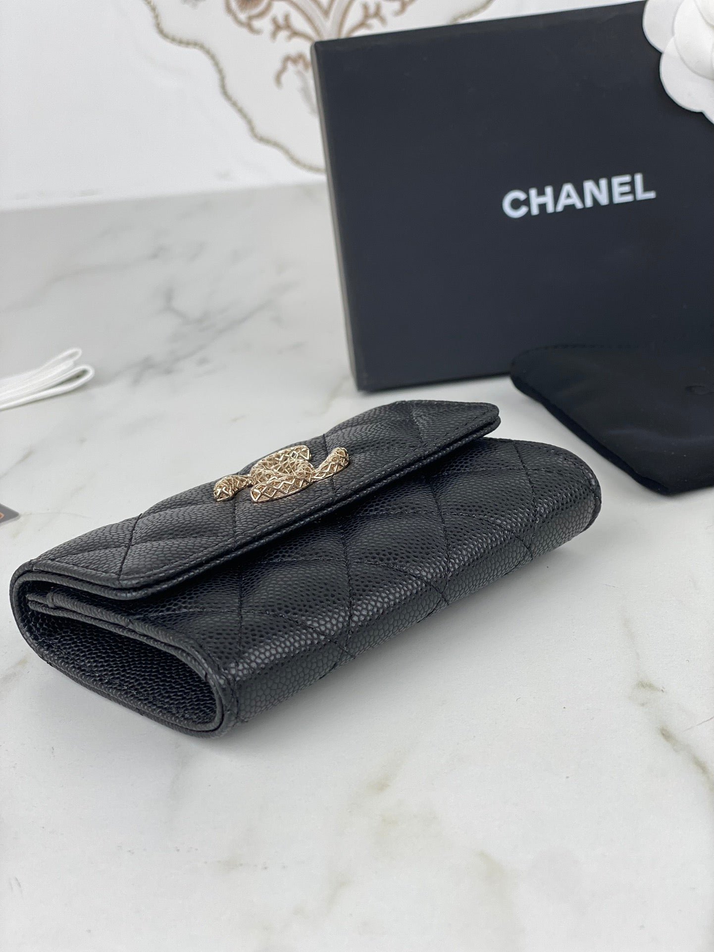 Chanel Small Wallet 11Cm Black Caviar Light Gold Hardware
