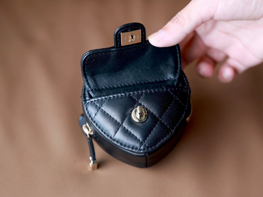 Home Shop Wallets Chanel Wallets Chanel Heart Coin Purse 8.5 Black Calfskin