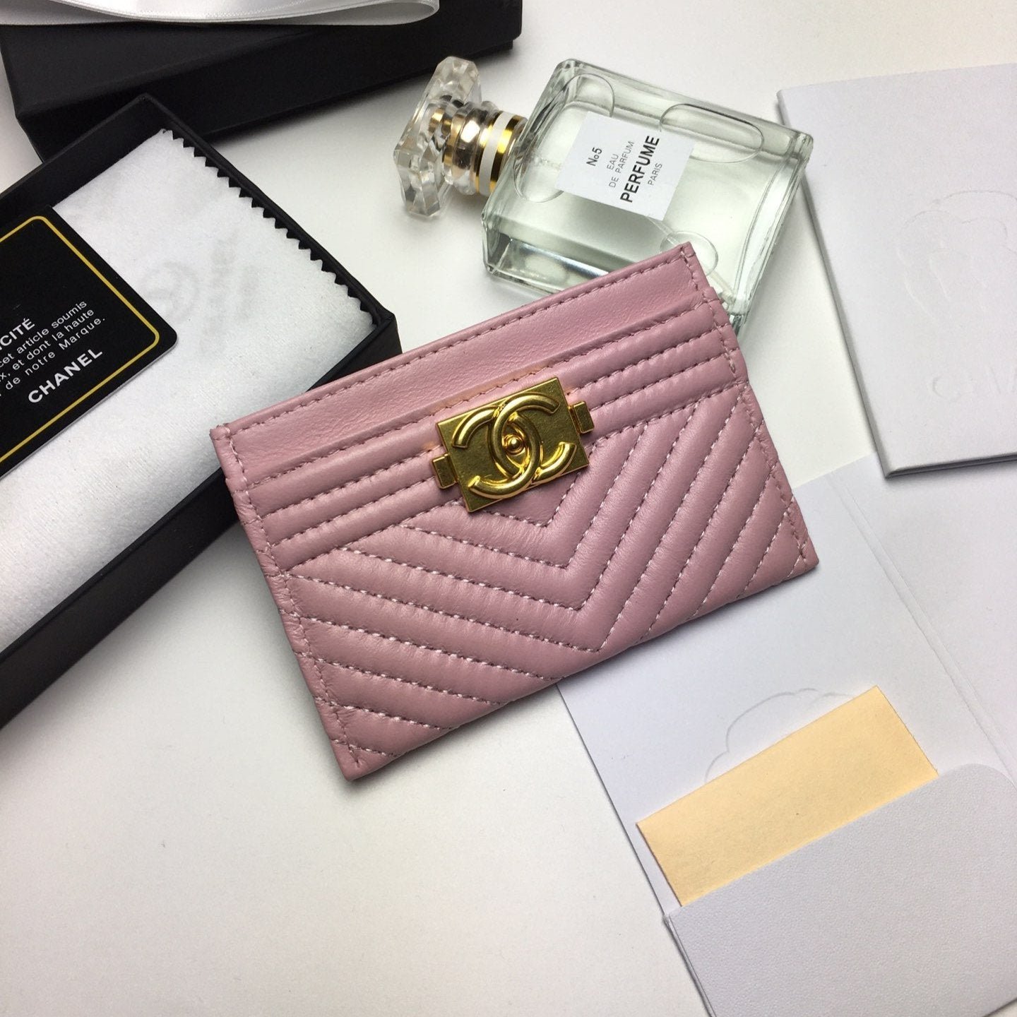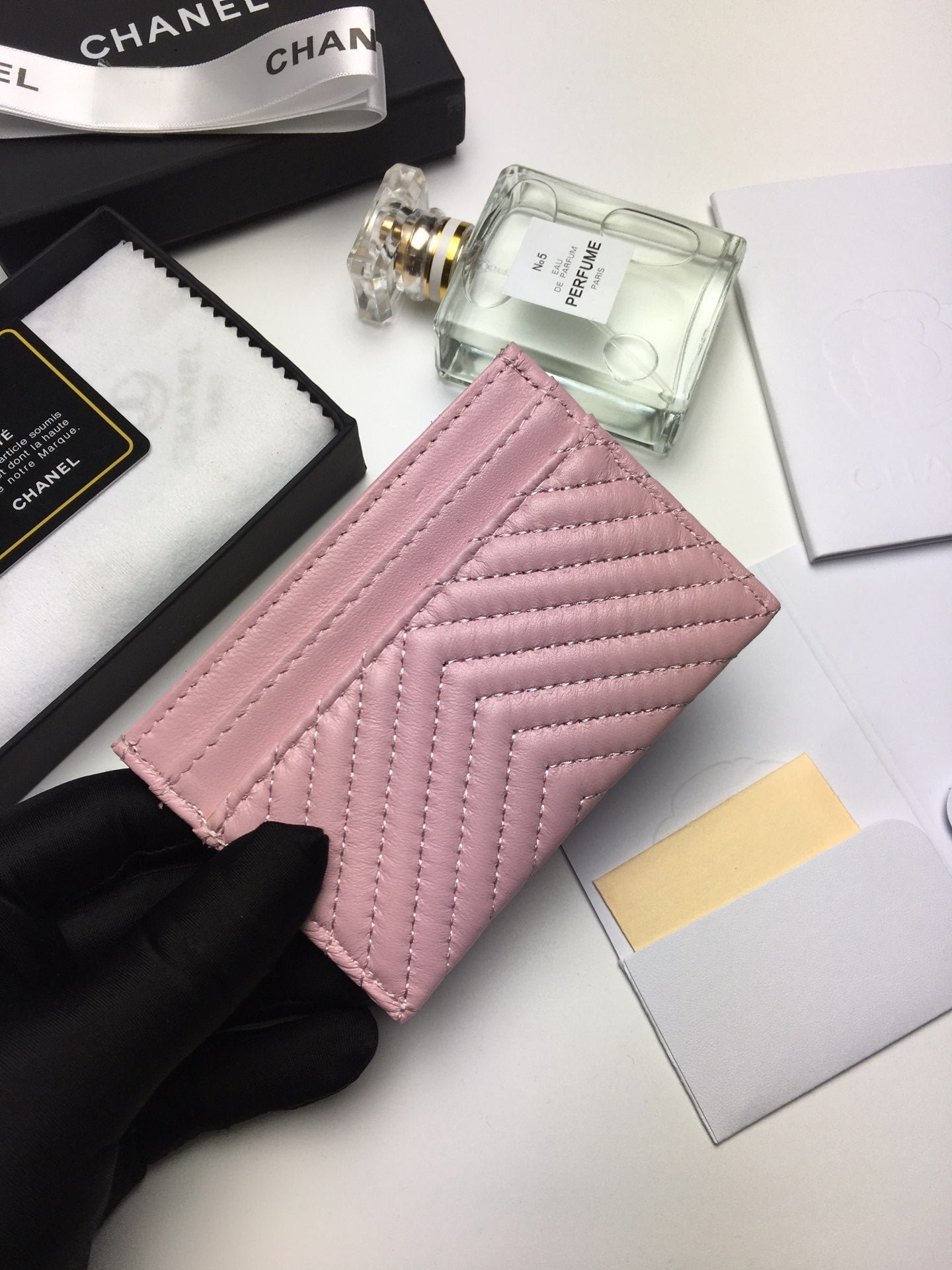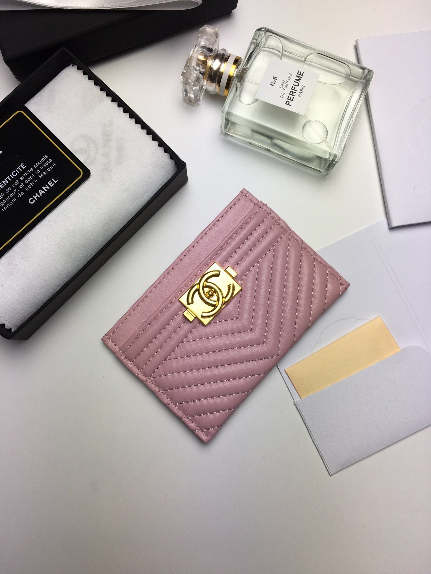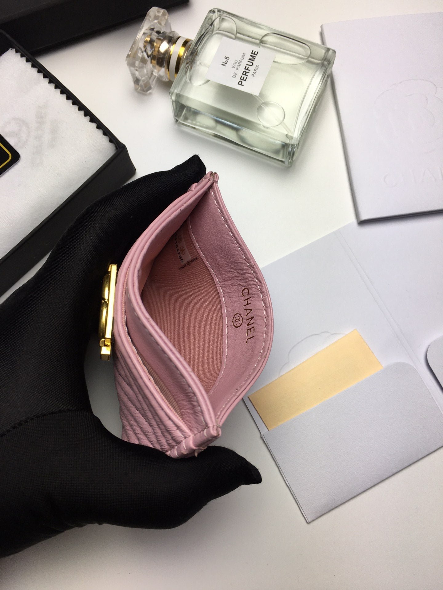 Chanel Line Card Holder 11.2 Baby Pink Calfskin Gold Icon