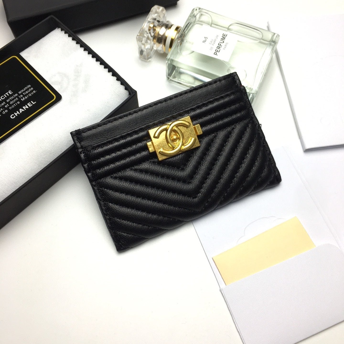 Chanel Boy 11Cm Card Holder Beige Caviar Gold Hardware