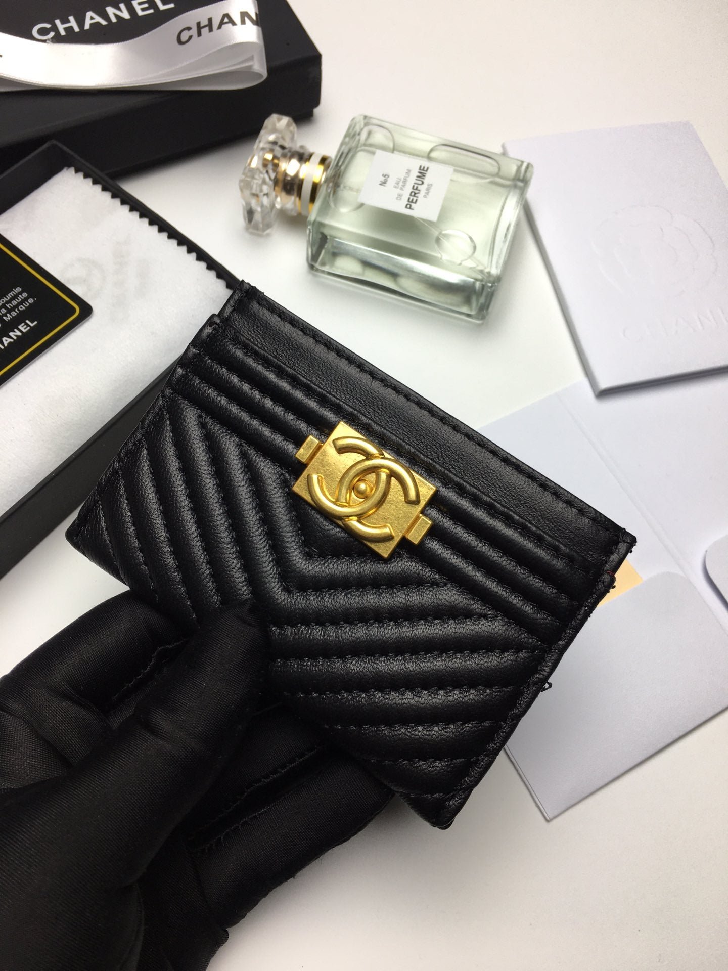 Home Shop Wallets Chanel Wallets Chanel Line Card Holder 11.2 Black Calfskin Gold Icon