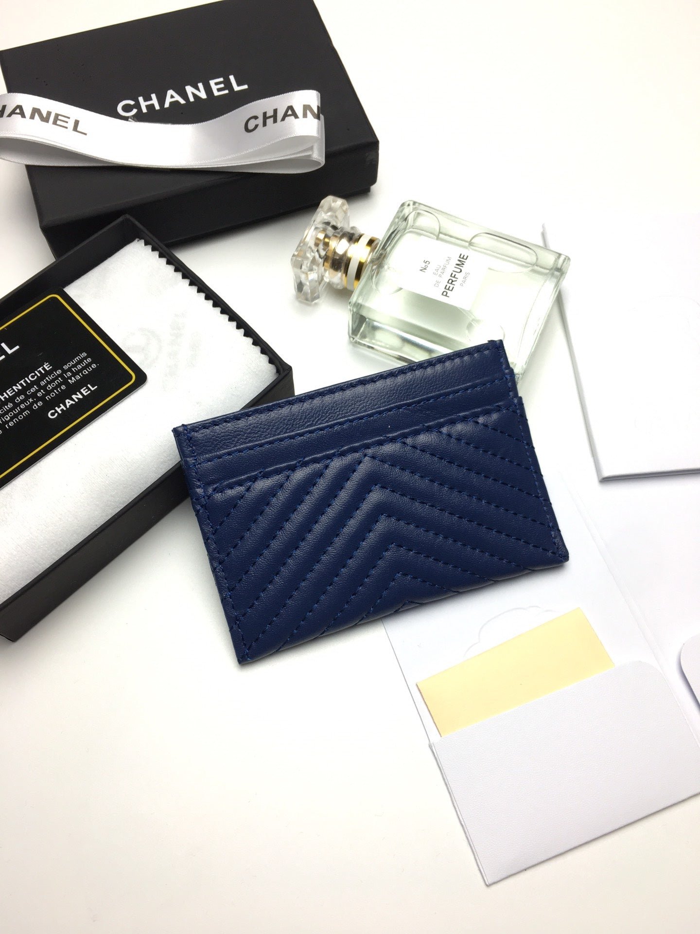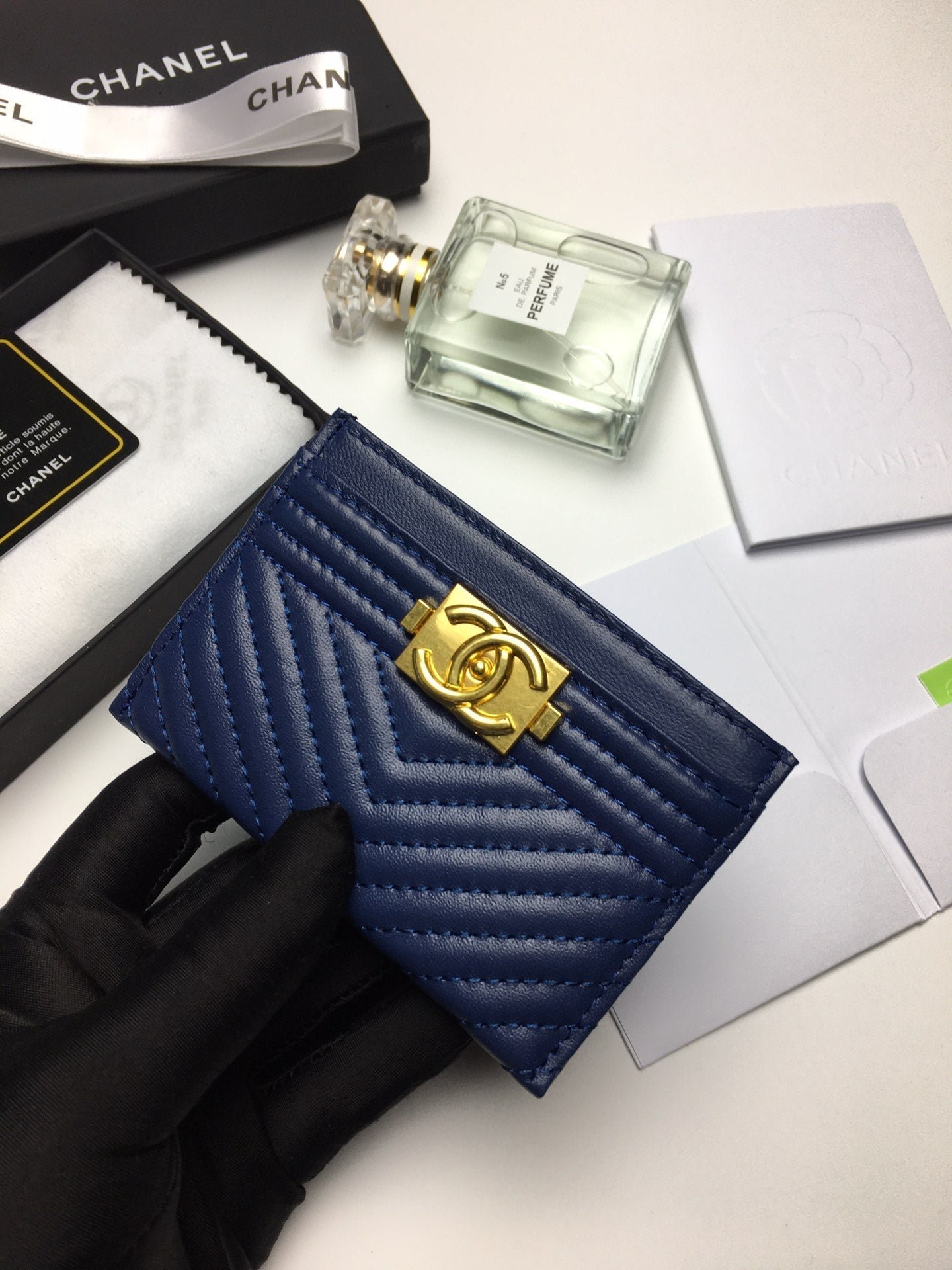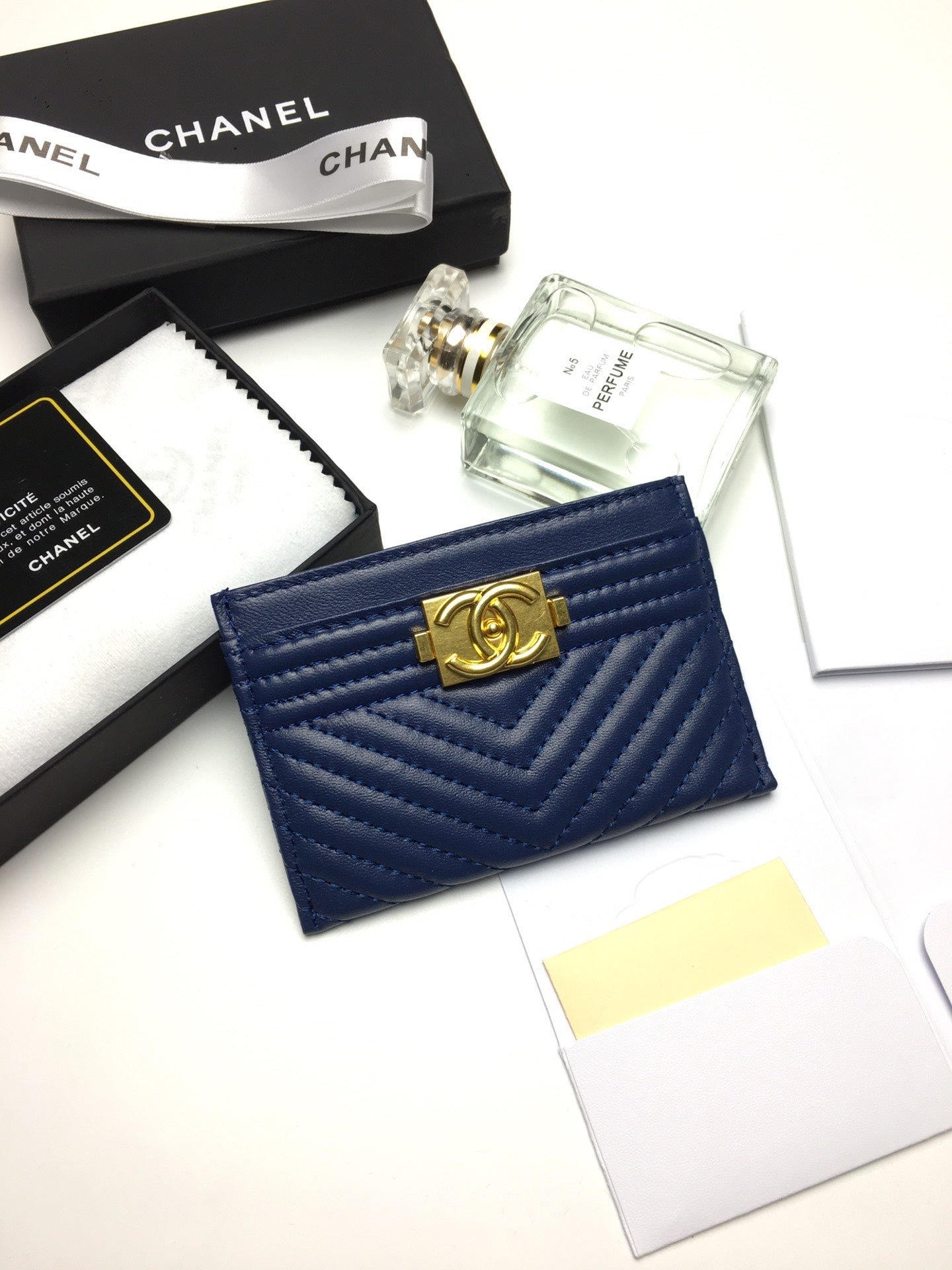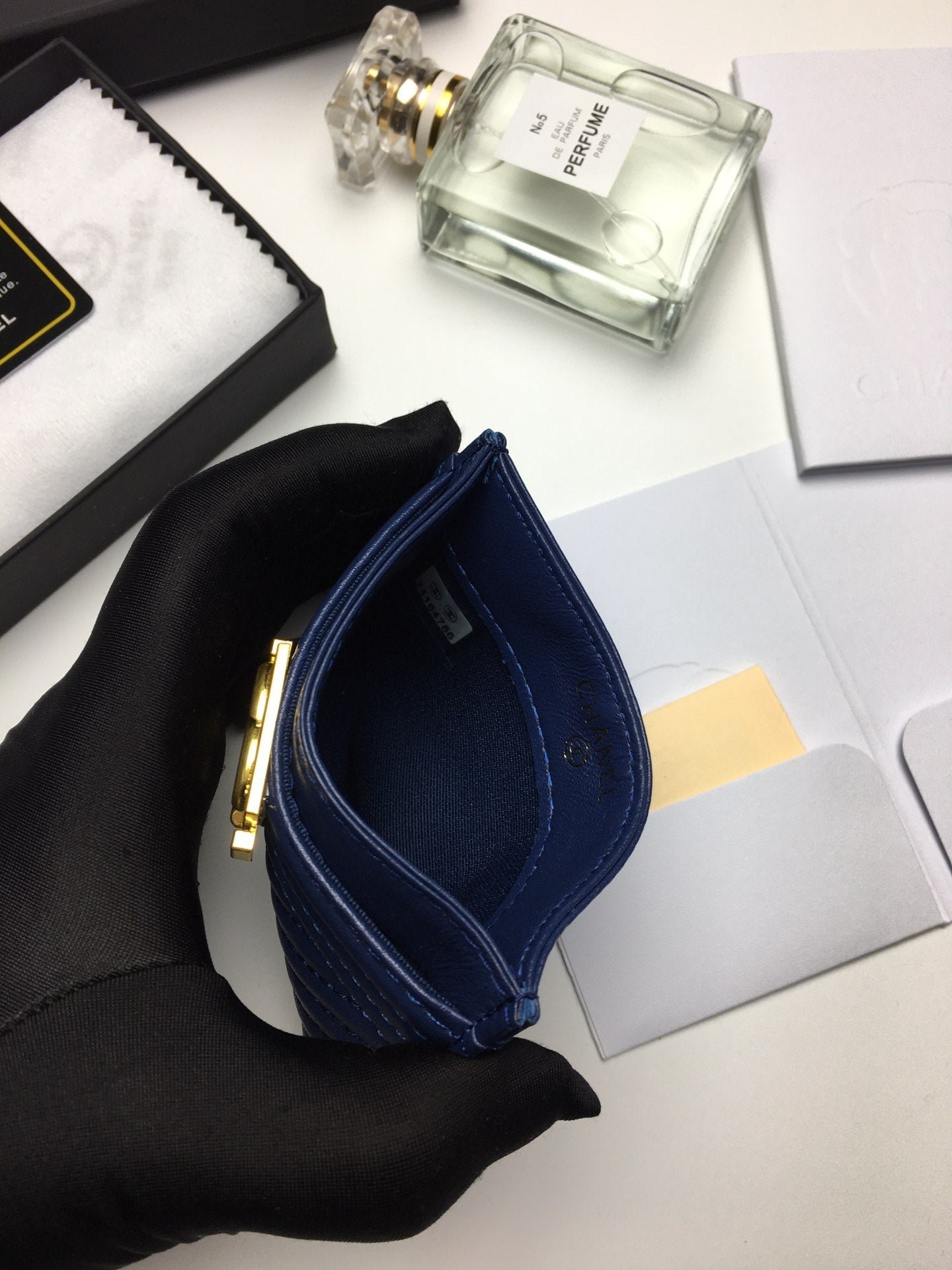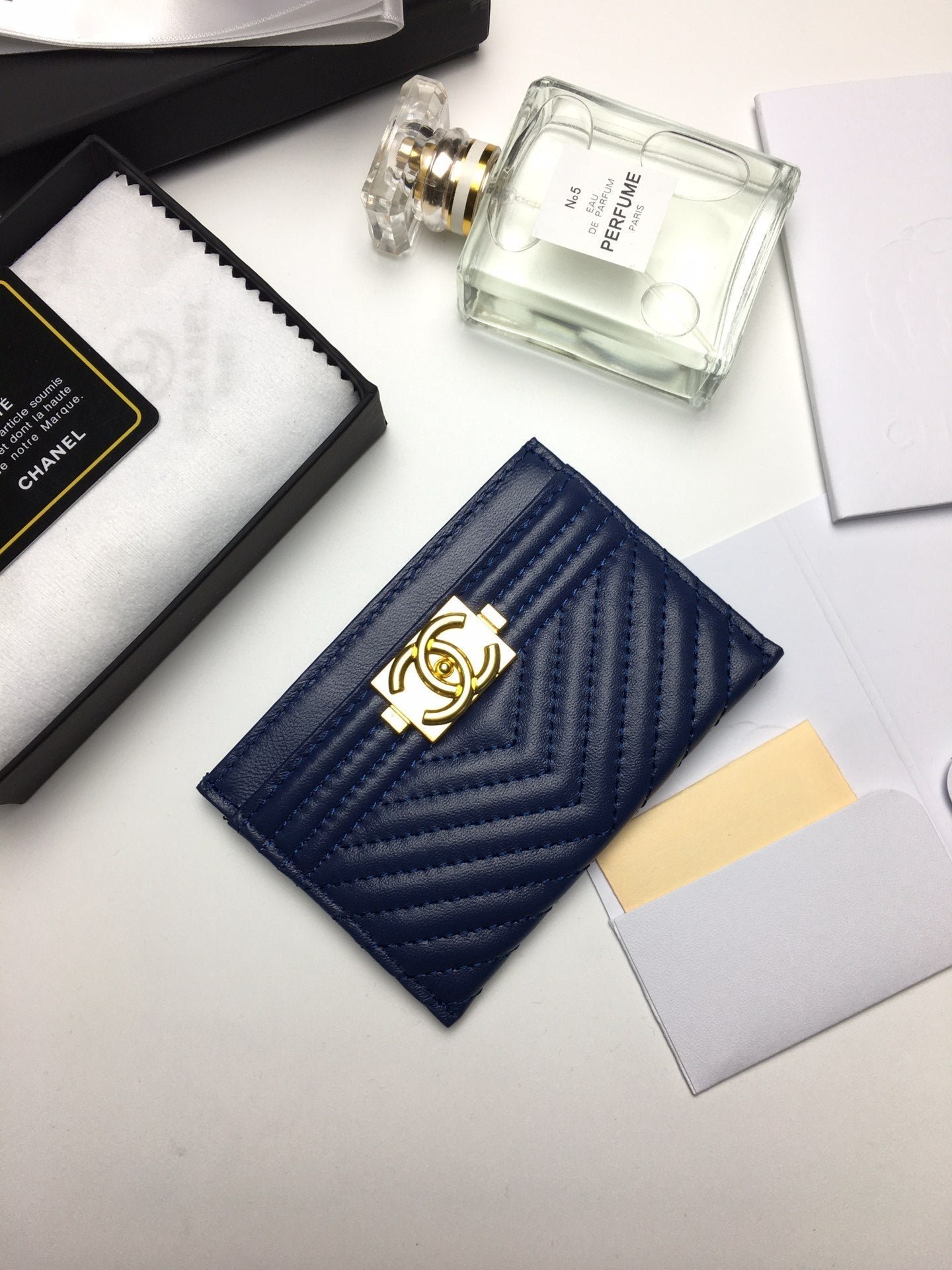 Chanel Line Card Holder 11.2 Navy Calfskin Gold Icon