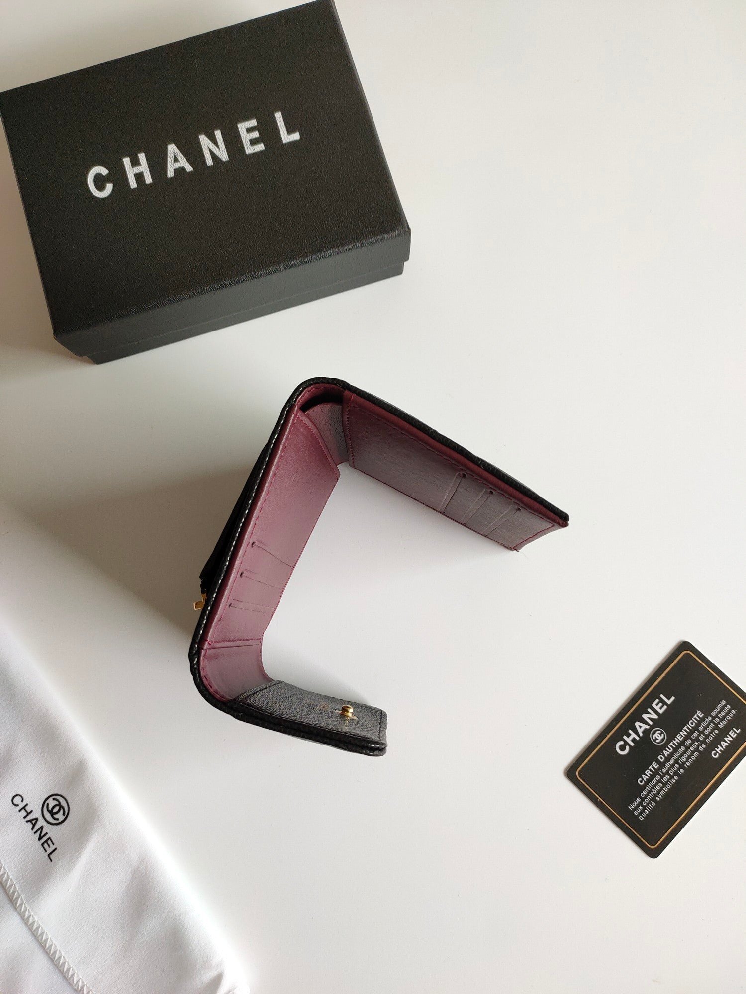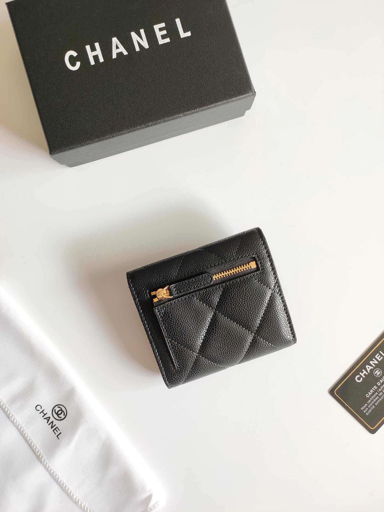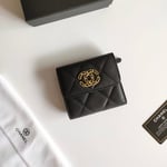 Chanel Small Wallet 11Cm Black Caviar Light Gold Hardware