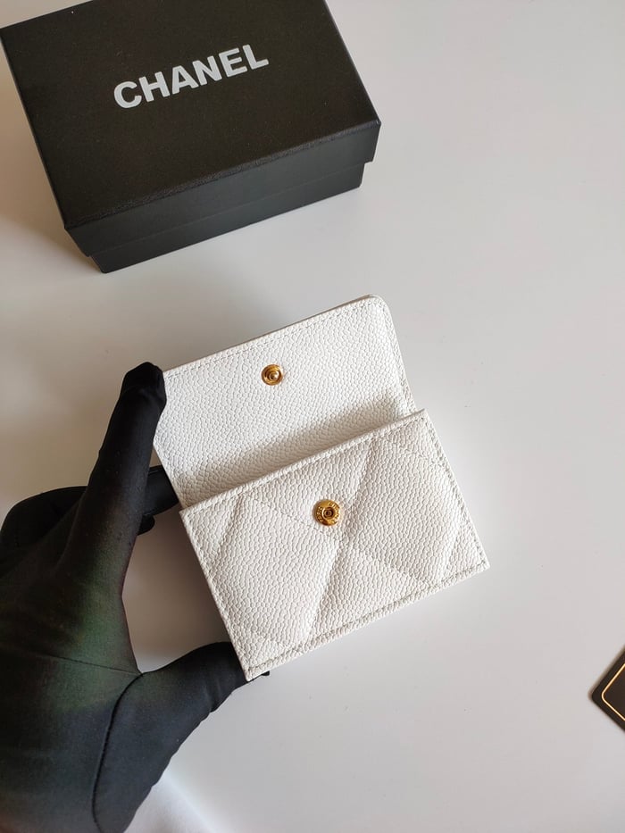 Chanel Small Wallet 11Cm White Caviar Light Gold Hardware