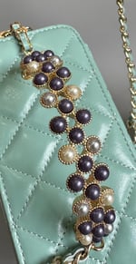 Home Shop Wallets Chanel Wallets Chanel Vanity Case Pearl 17Cm Aqua Blue Lambskin Gold Hardware