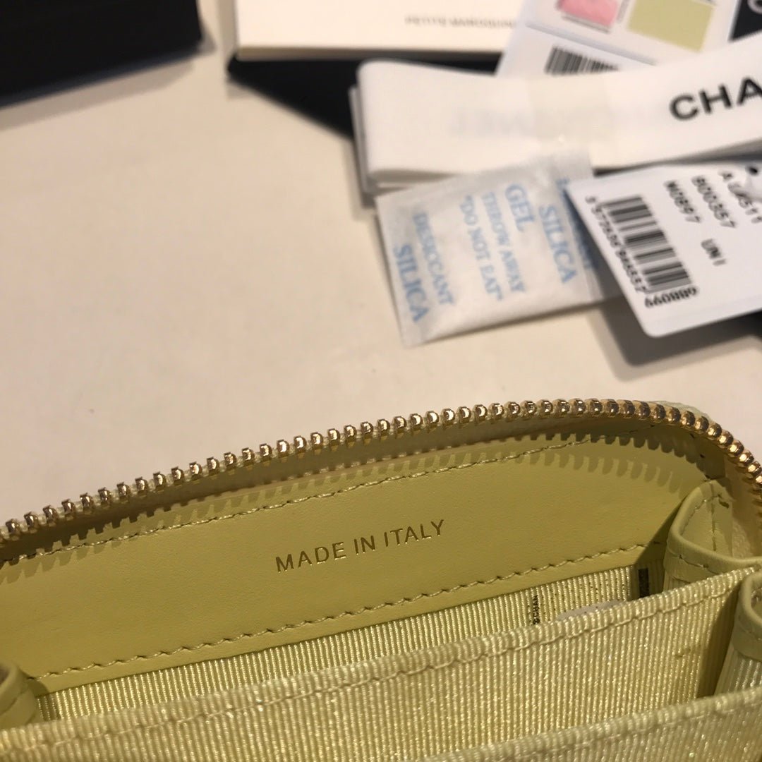 Chanel Zipped Caviar Purse 11 Light Yellow Calfskin Gold Icon