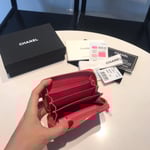 Chanel Zipped Coin Basic Purse 11 Red Pink Calfskin Gold Icon